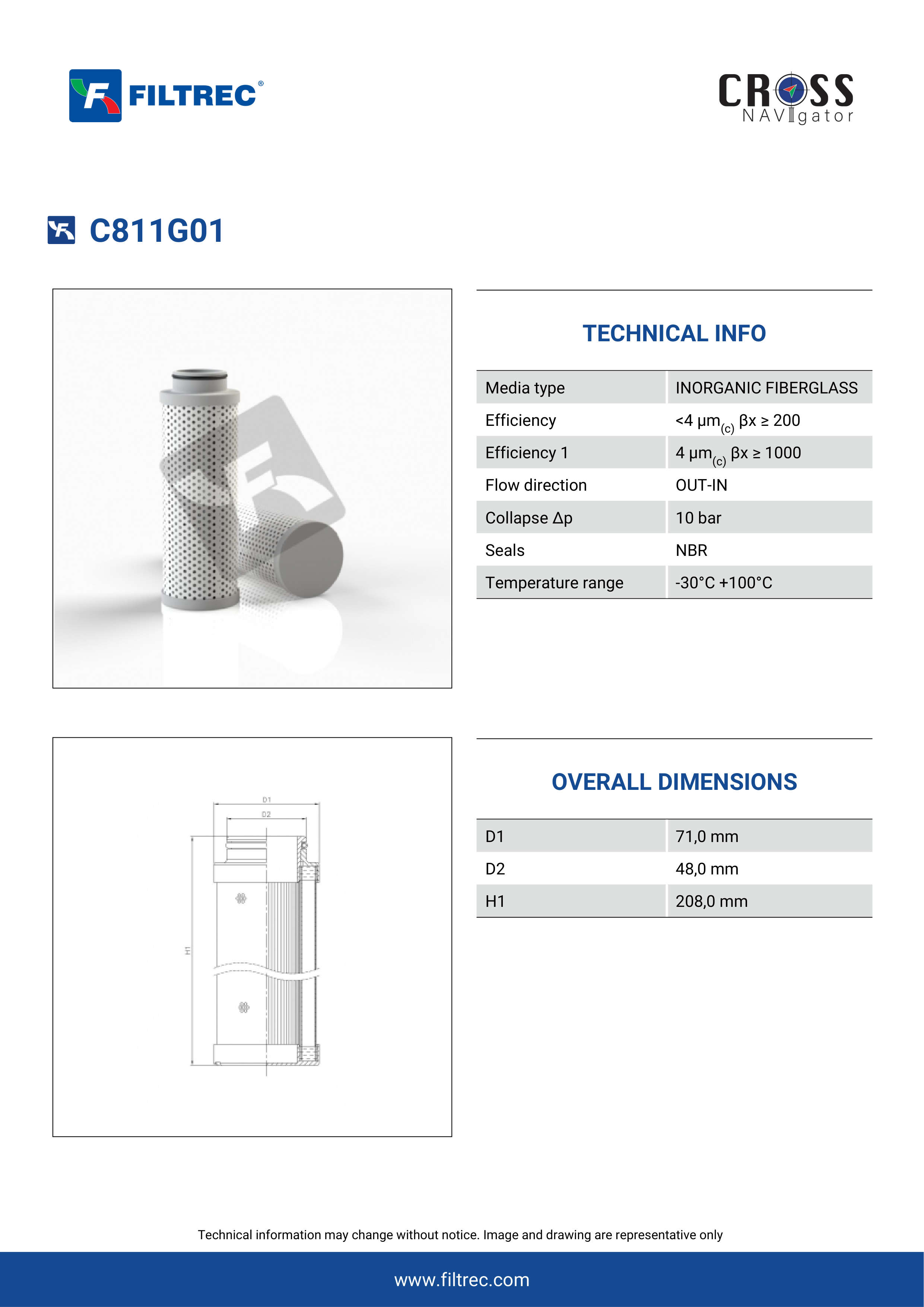 Genuine Filtrec C811G01. This Filtrec element is designed to meet or exceed the quality and performance of brand OEM’s ensuring superior filtration performance and long-lasting durability.