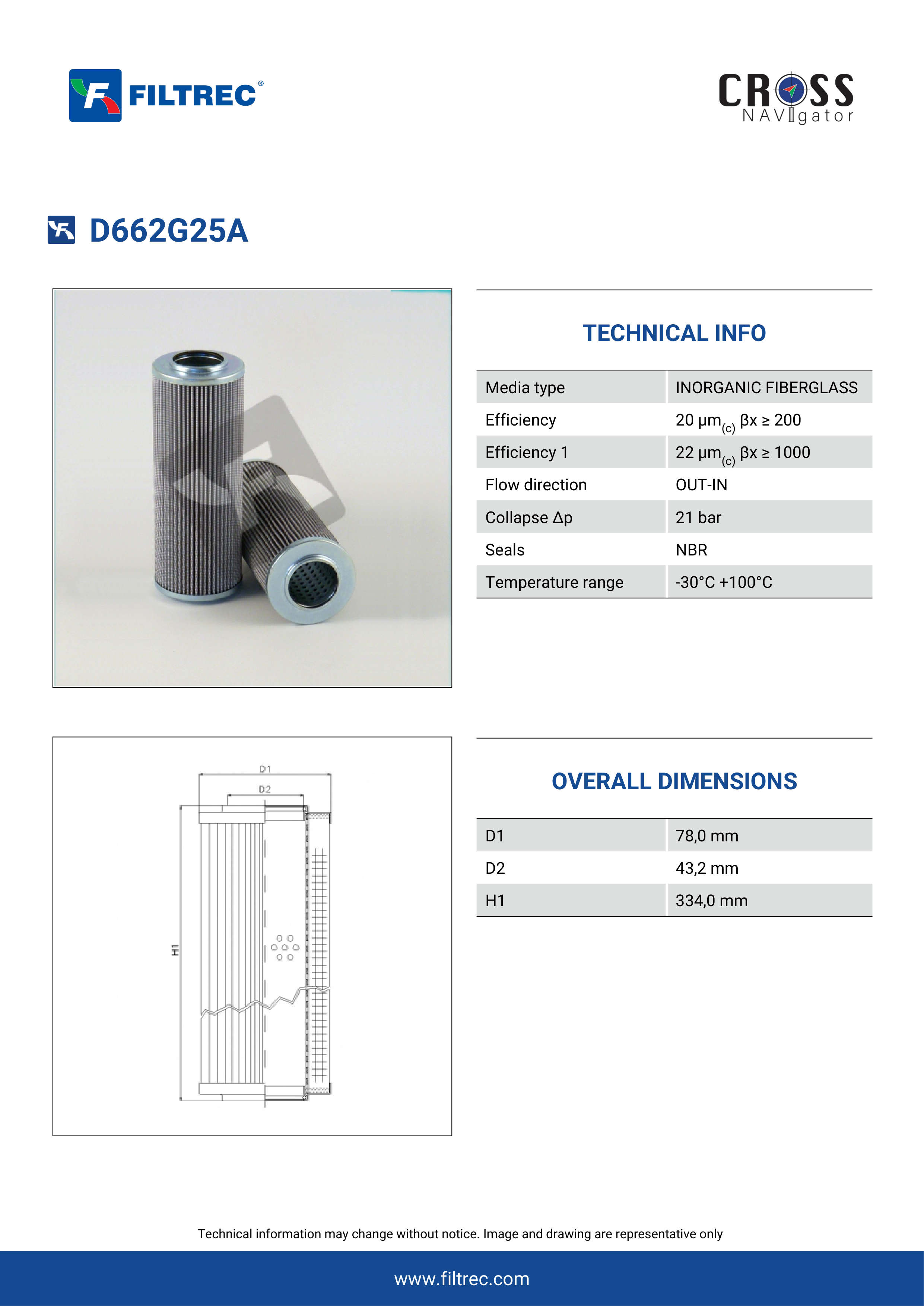 Genuine Filtrec D662G25A. This Filtrec element is designed to meet or exceed the quality and performance of brand OEM’s ensuring superior filtration performance and long-lasting durability.