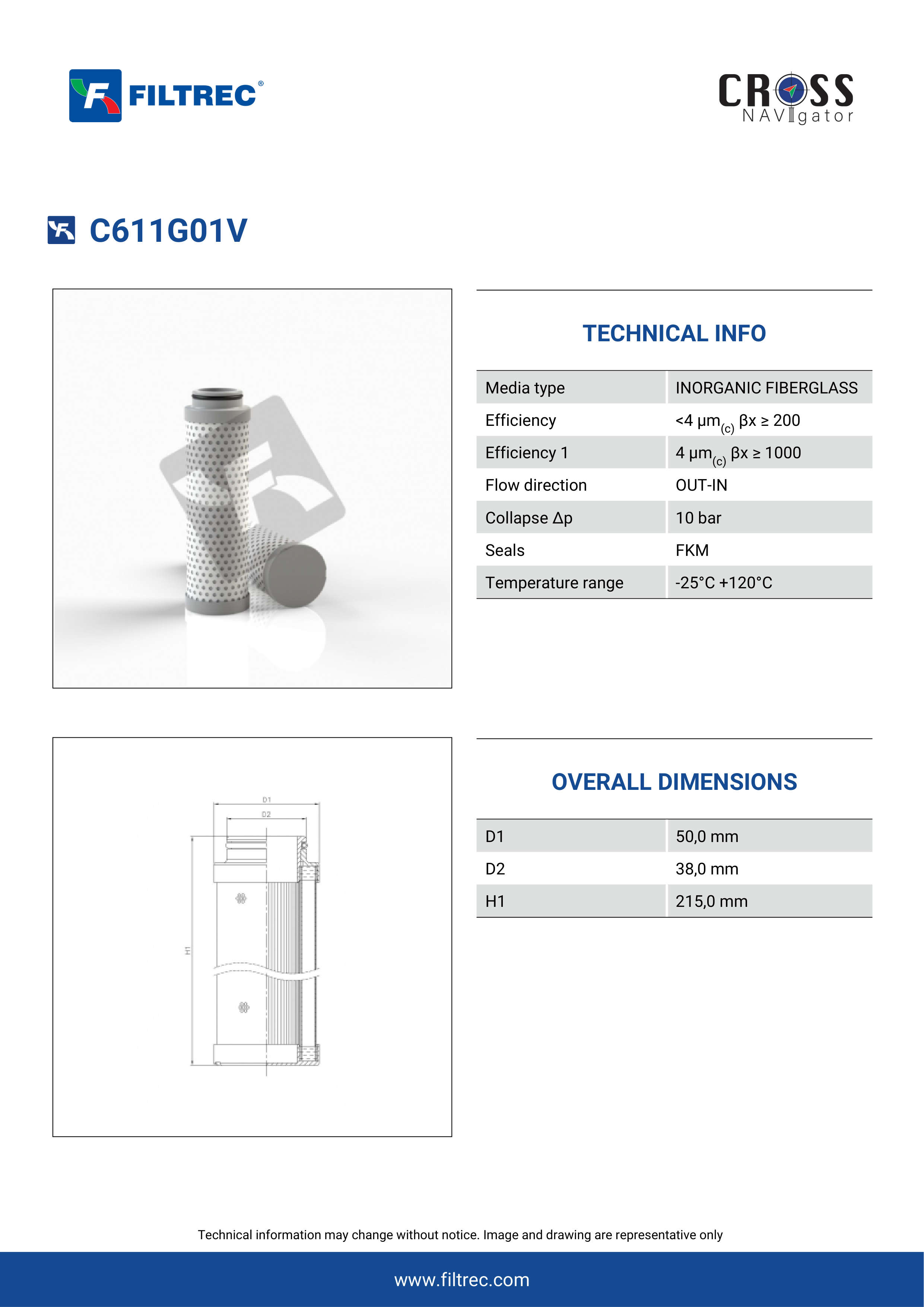 Genuine Filtrec C611G01V. This Filtrec element is designed to meet or exceed the quality and performance of brand OEM’s ensuring superior filtration performance and long-lasting durability.