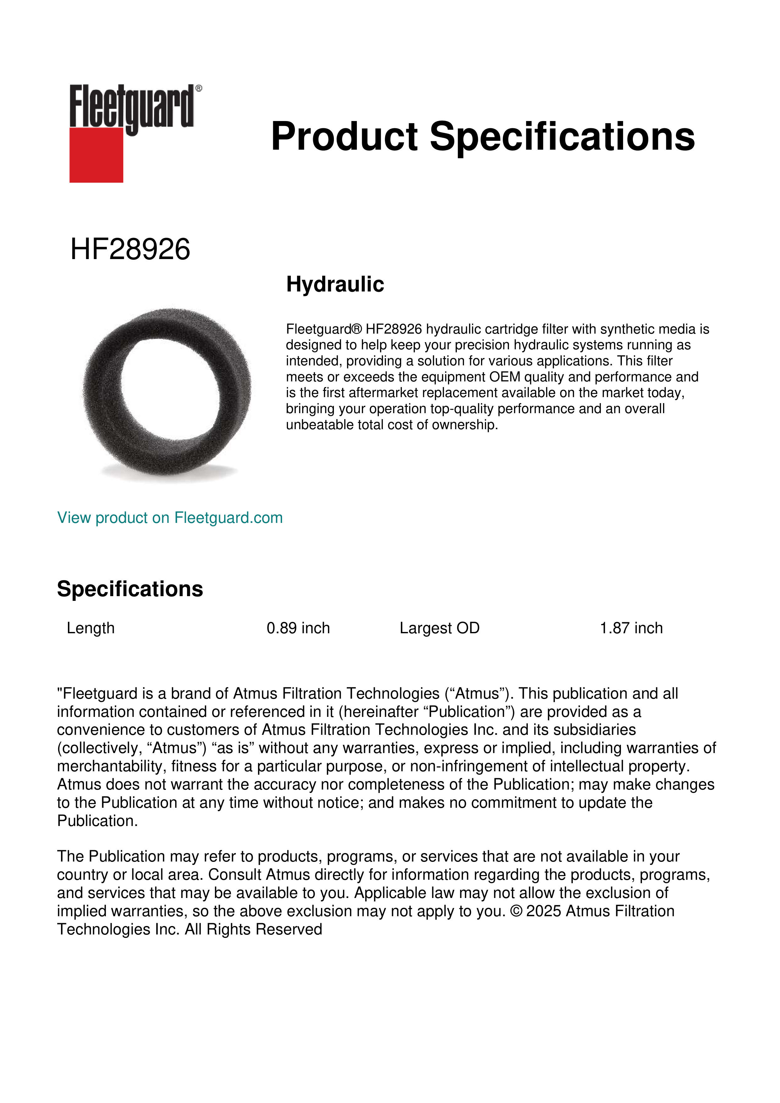 Genuine Fleetguard HF28926
