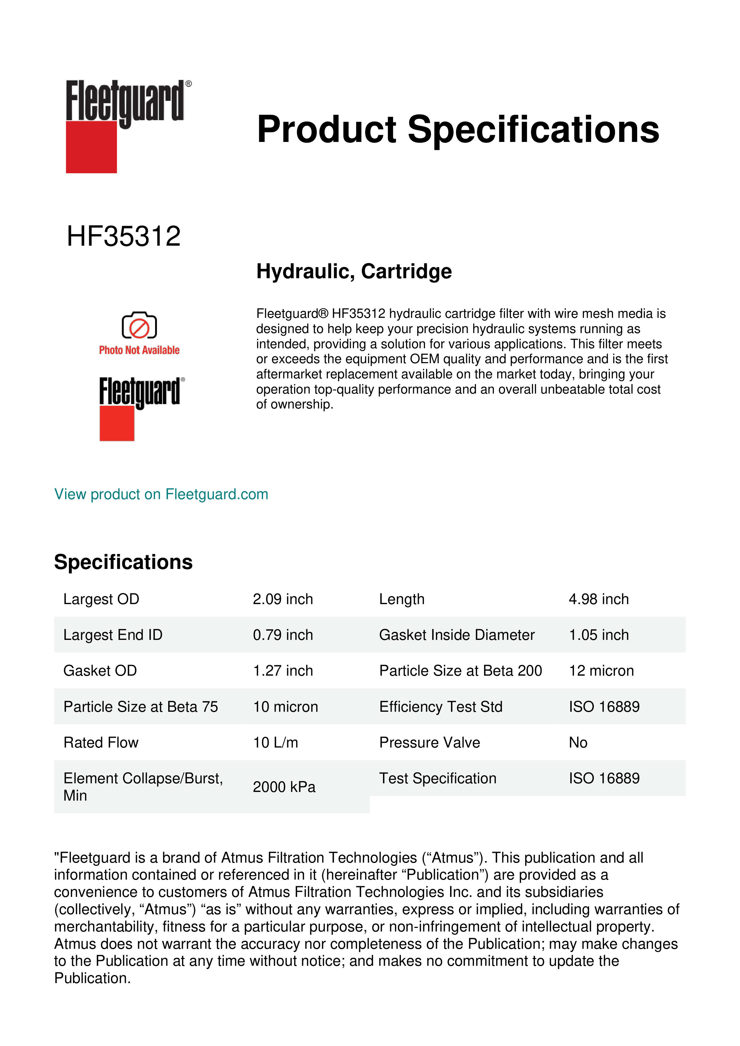 Fleetguard HF35312 Replacement Hydraulic Filters