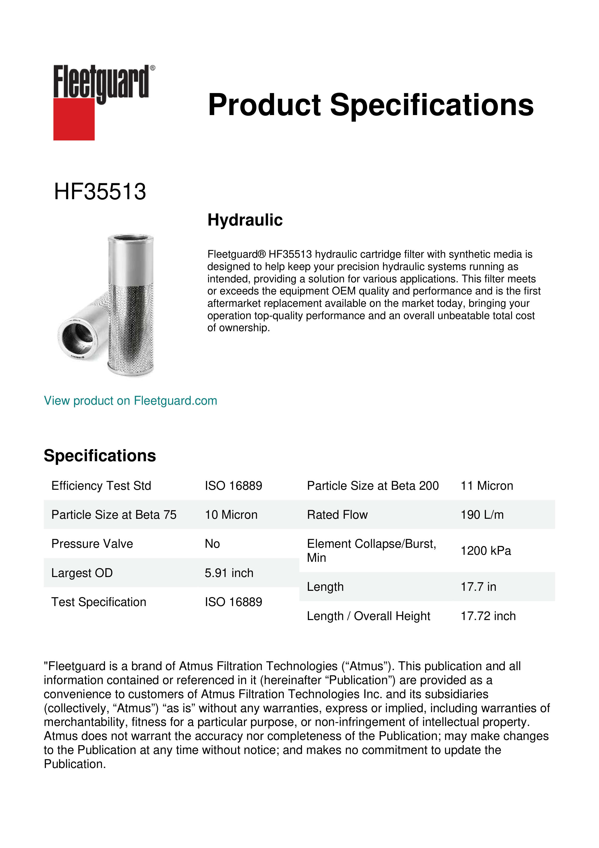Fleetguard HF35513 Replacement Hydraulic Filters