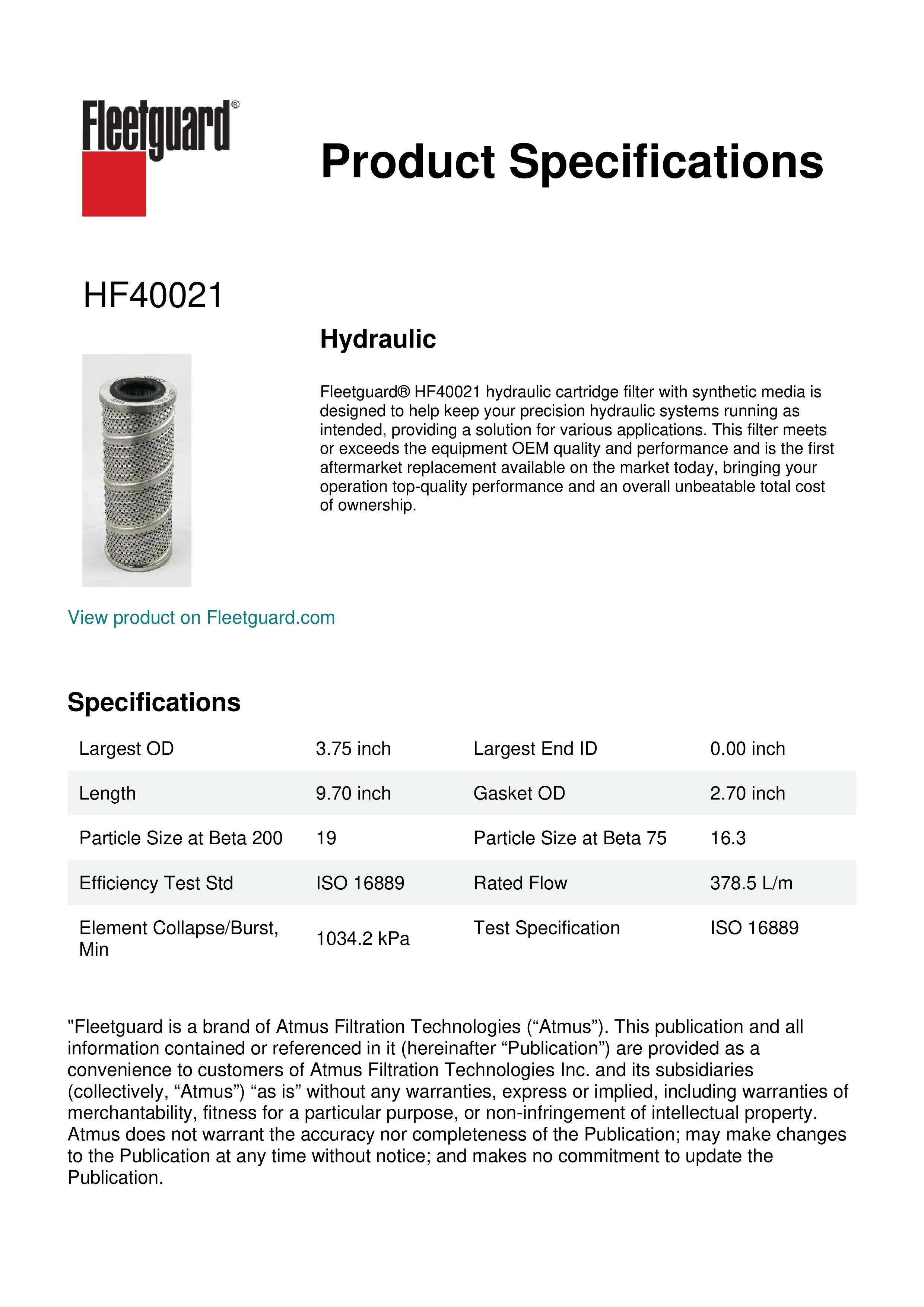 The efficiency of the element is shown using the Micron (µ) and Beta (β) ratings. The micron rating indicates the size of the particle being filtered and the beta rating the efficiency, calculated as 1/β.