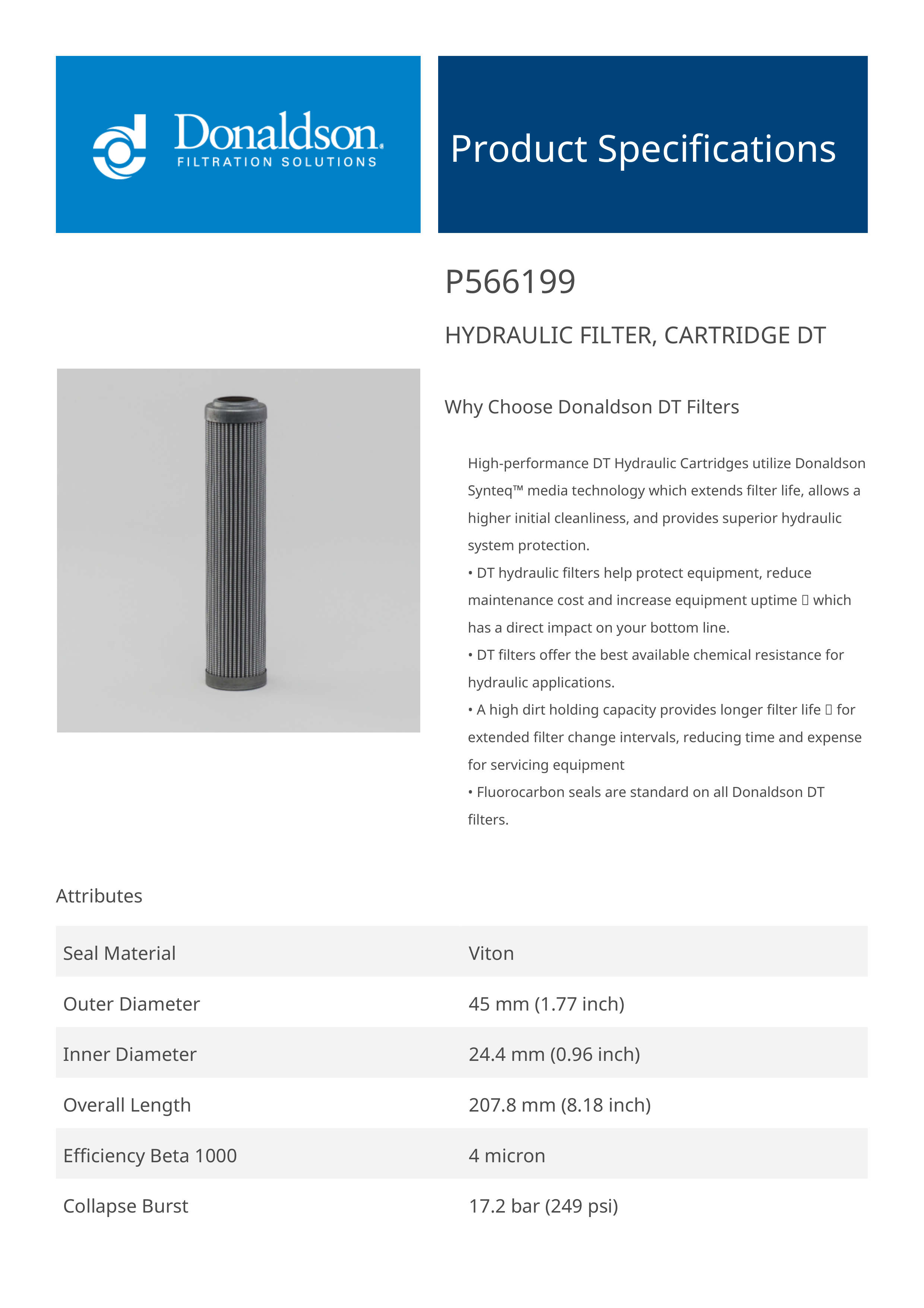 The efficiency of the element is shown using the Micron (µ) and Beta (β) ratings. The micron rating indicates the size of the particle being filtered and the beta rating the efficiency, calculated as 1/β.