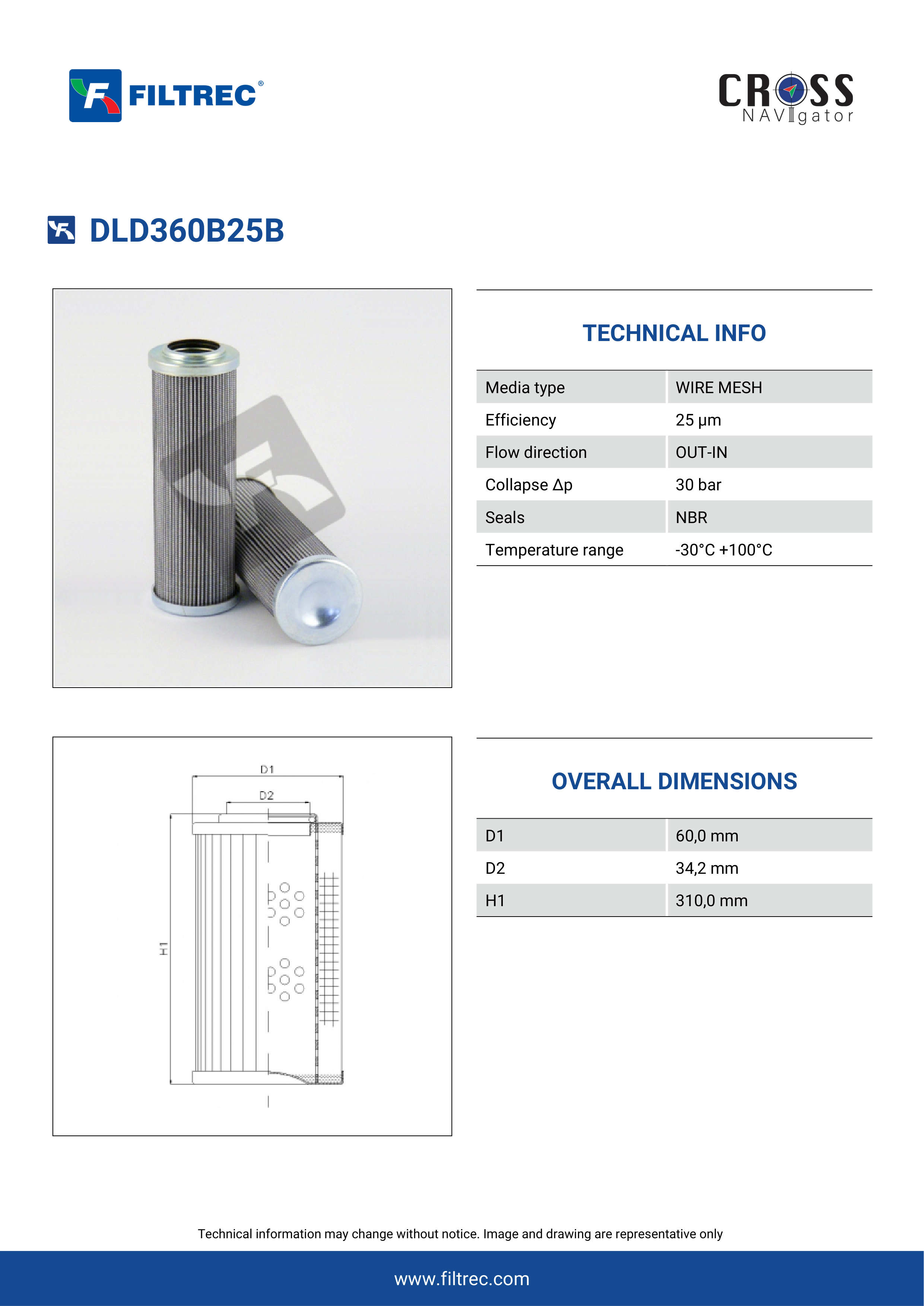 The efficiency of the element is shown using the Micron (µ) and Beta (β) ratings. The micron rating indicates the size of the particle being filtered and the beta rating the efficiency, calculated as 1/β.