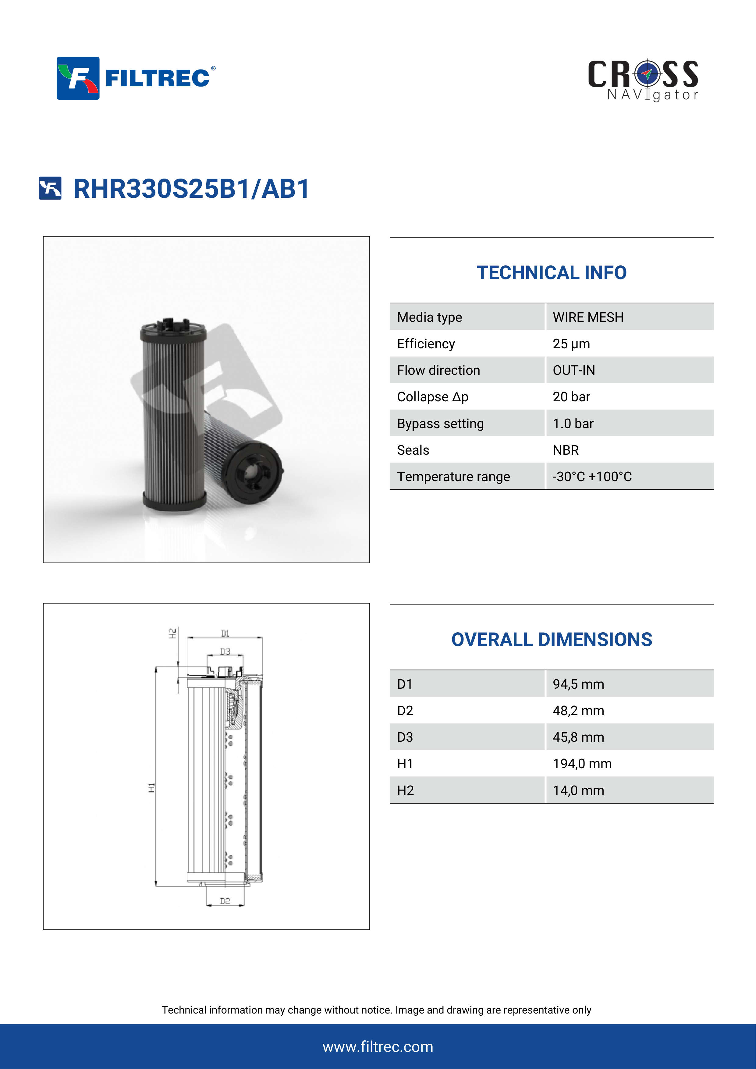 Genuine Filtrec RHR330S25B1/AB1. This Filtrec element is designed to meet or exceed the quality and performance of brand OEM’s ensuring superior filtration performance and long-lasting durability.Engineered with their high performance media and a durable design, the RHR330S25B1/AB1 provides reliable and consistent performance over its lifespan, even in harsh operating environments. When you order from FilterFinder, you can trust that you are getting a reliable and high-quality replacement filter that will keep your system running smoothly.