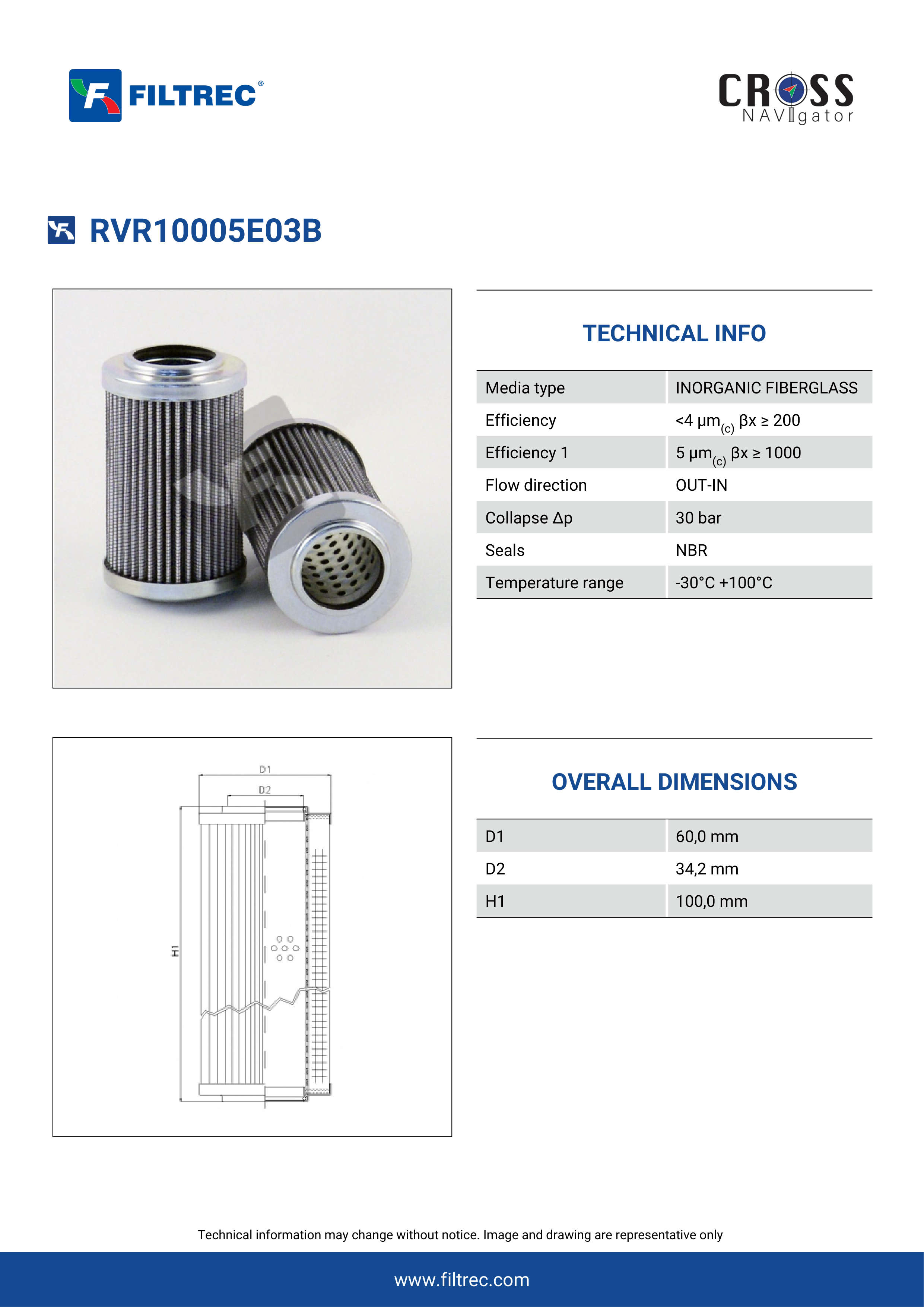 The efficiency of the element is shown using the Micron (µ) and Beta (β) ratings. The micron rating indicates the size of the particle being filtered and the beta rating the efficiency, calculated as 1/β.