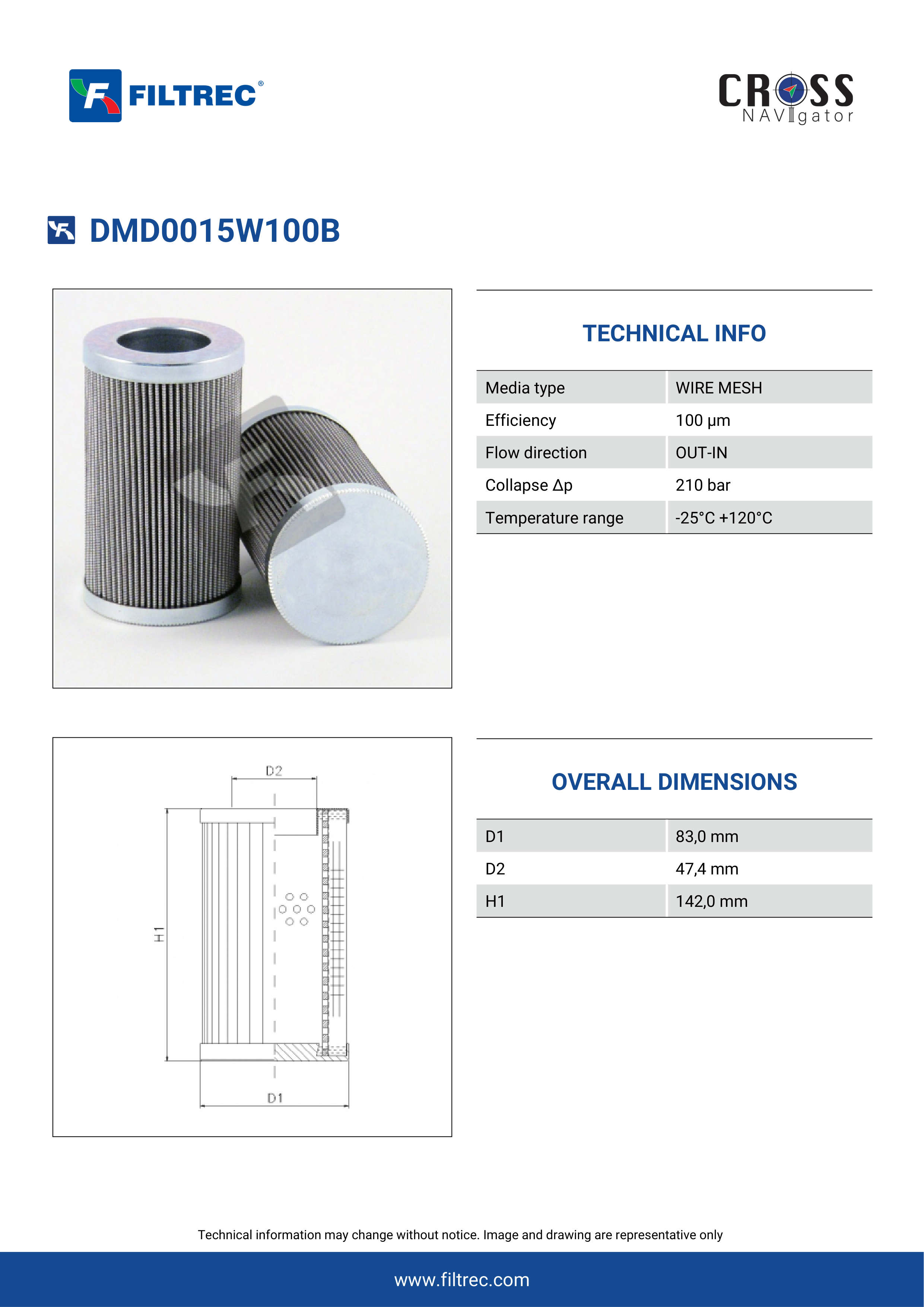 The efficiency of the element is shown using the Micron (µ) and Beta (β) ratings. The micron rating indicates the size of the particle being filtered and the beta rating the efficiency, calculated as 1/β.