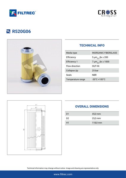 Genuine Filtrec R520G06. This Filtrec element is designed to meet or exceed the quality and performance of brand OEM’s ensuring superior filtration performance and long-lasting durability.