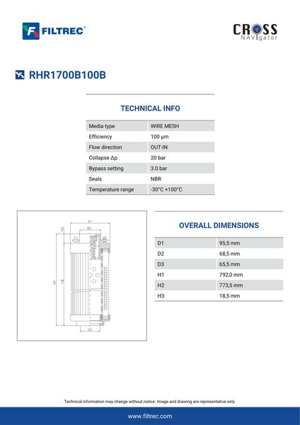 Engineered with their high performance media and a durable design, the RHR1700B100B provides reliable and consistent performance over its lifespan, even in harsh operating environments. When you order from FilterFinder, you can trust that you are getting a reliable and high-quality replacement filter that will keep your system running smoothly.