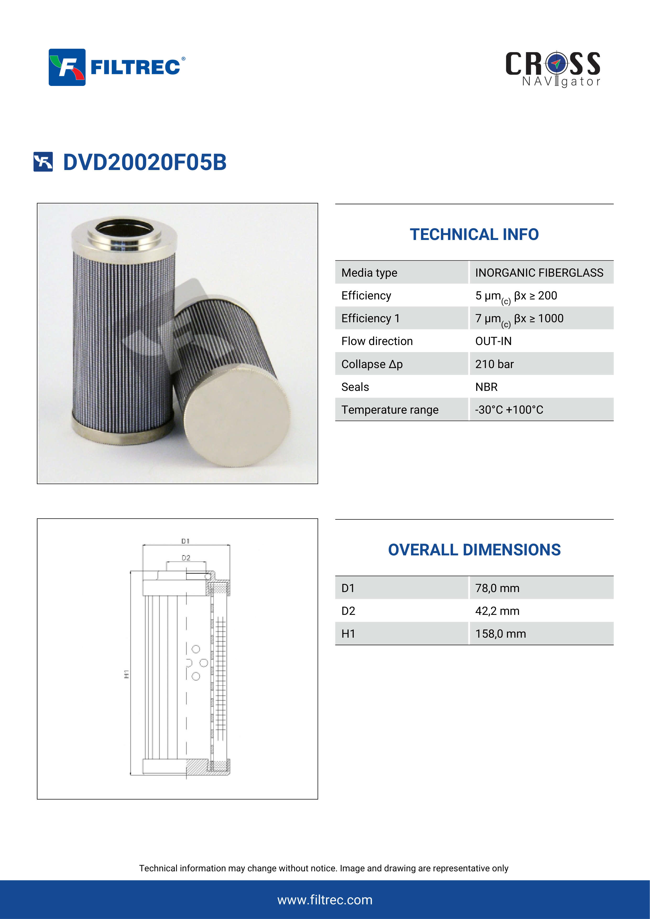 Genuine Filtrec DVD20020F05B. This Filtrec element is designed to meet or exceed the quality and performance of brand OEM’s ensuring superior filtration performance and long-lasting durability.