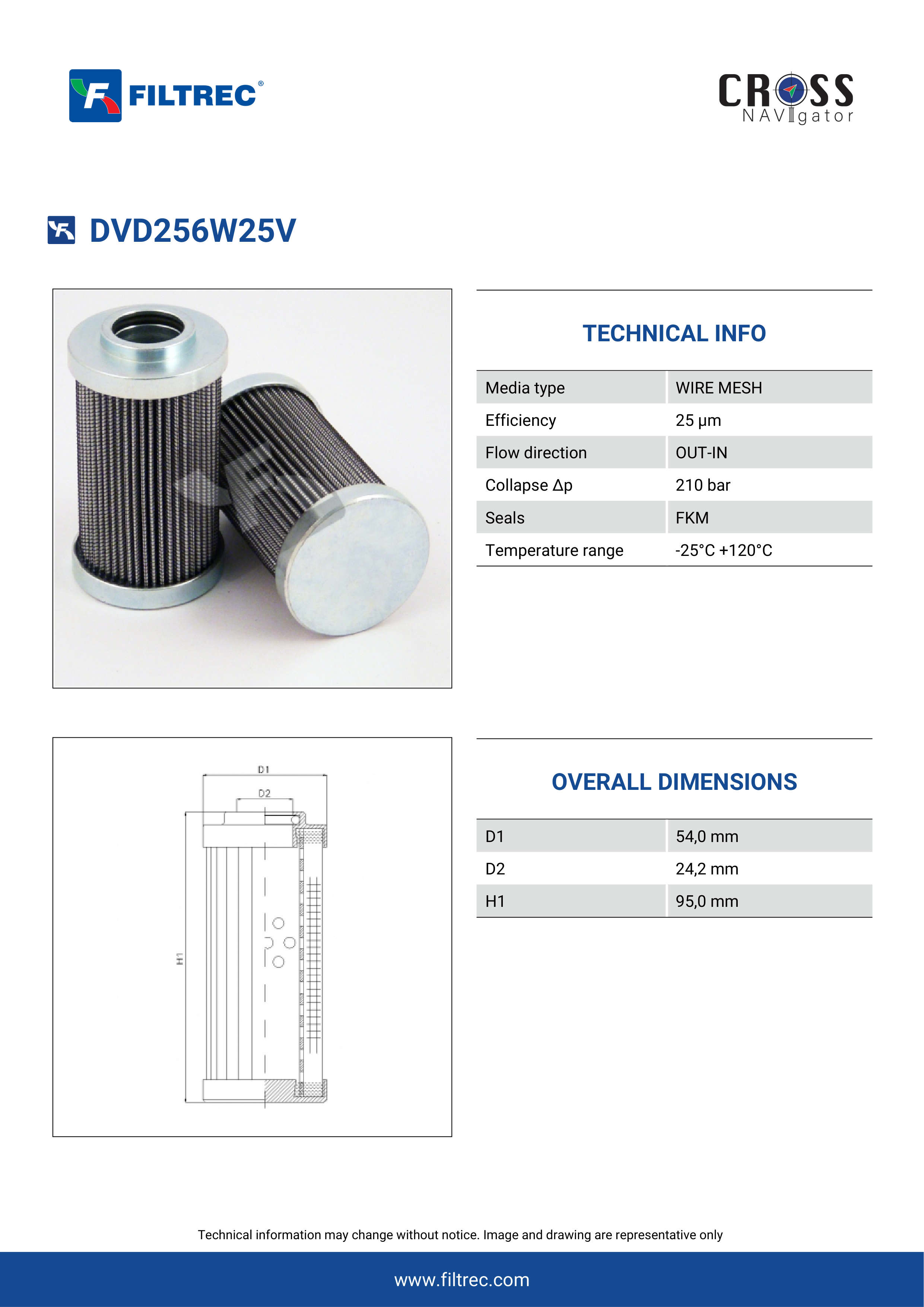 Genuine Filtrec DVD256W25V. This Filtrec element is designed to meet or exceed the quality and performance of brand OEM’s ensuring superior filtration performance and long-lasting durability.