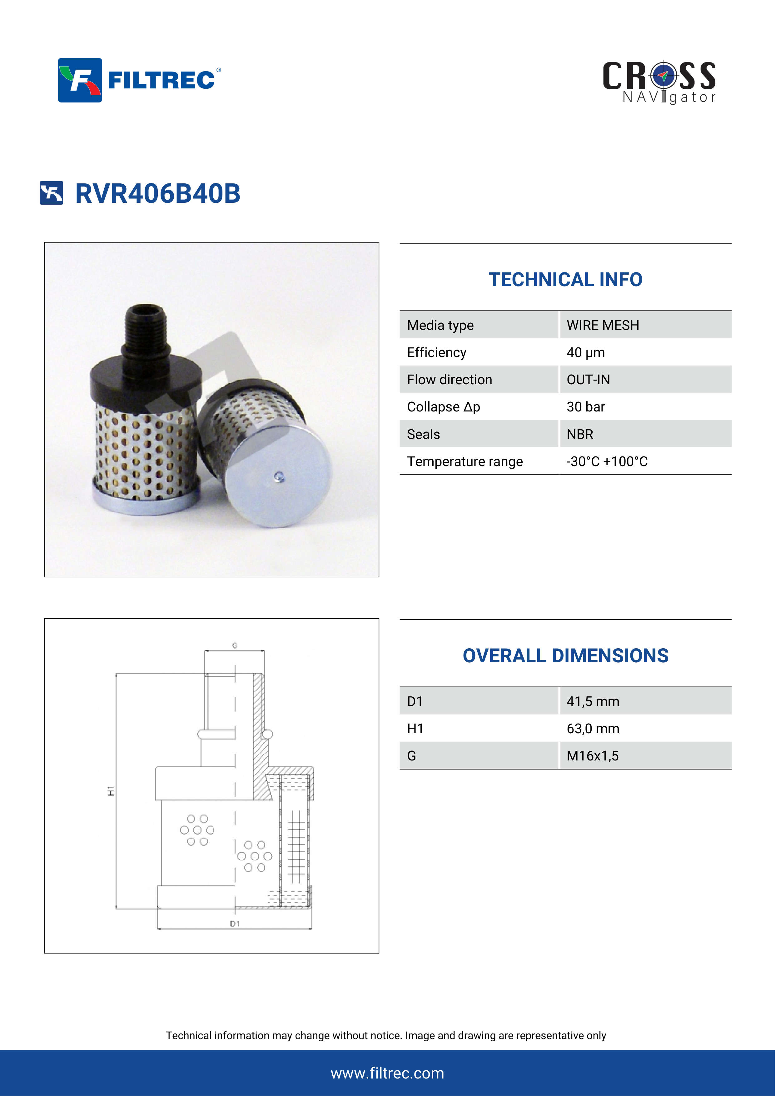 The efficiency of the element is shown using the Micron (µ) and Beta (β) ratings. The micron rating indicates the size of the particle being filtered and the beta rating the efficiency, calculated as 1/β.