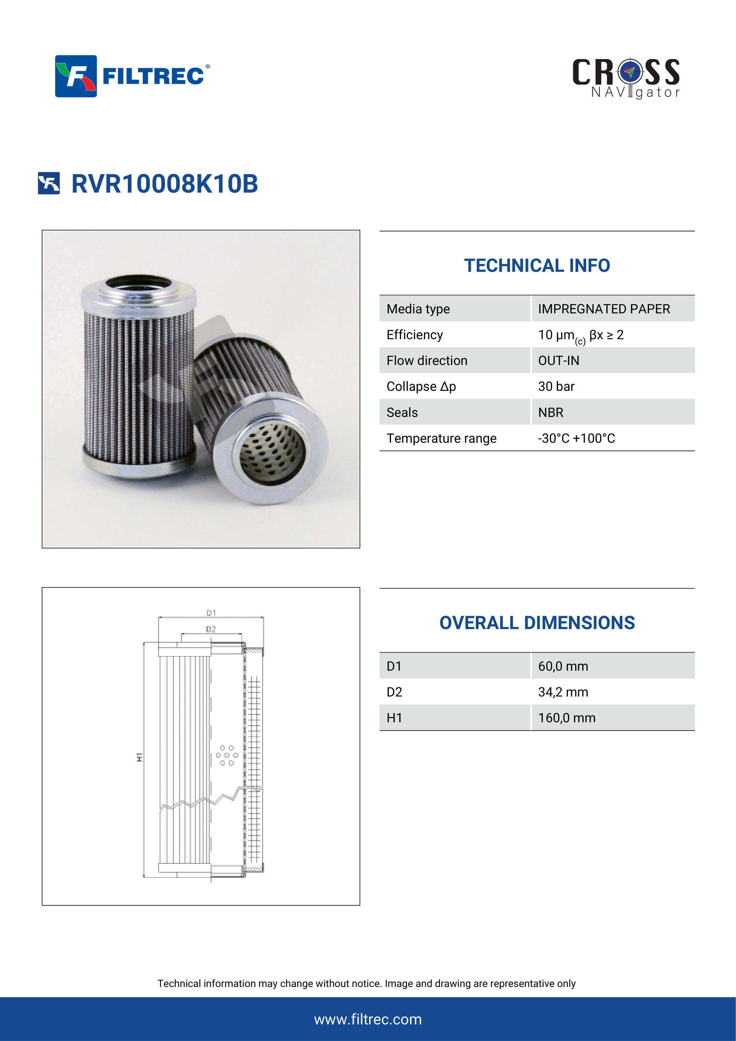 Genuine Filtrec RVR10008K10B. This Filtrec element is designed to meet or exceed the quality and performance of brand OEM’s ensuring superior filtration performance and long-lasting durability.Engineered with their high performance media and a durable design, the RVR10008K10B provides reliable and consistent performance over its lifespan, even in harsh operating environments. When you order from FilterFinder, you can trust that you are getting a reliable and high-quality replacement filter that will keep your system running smoothly.