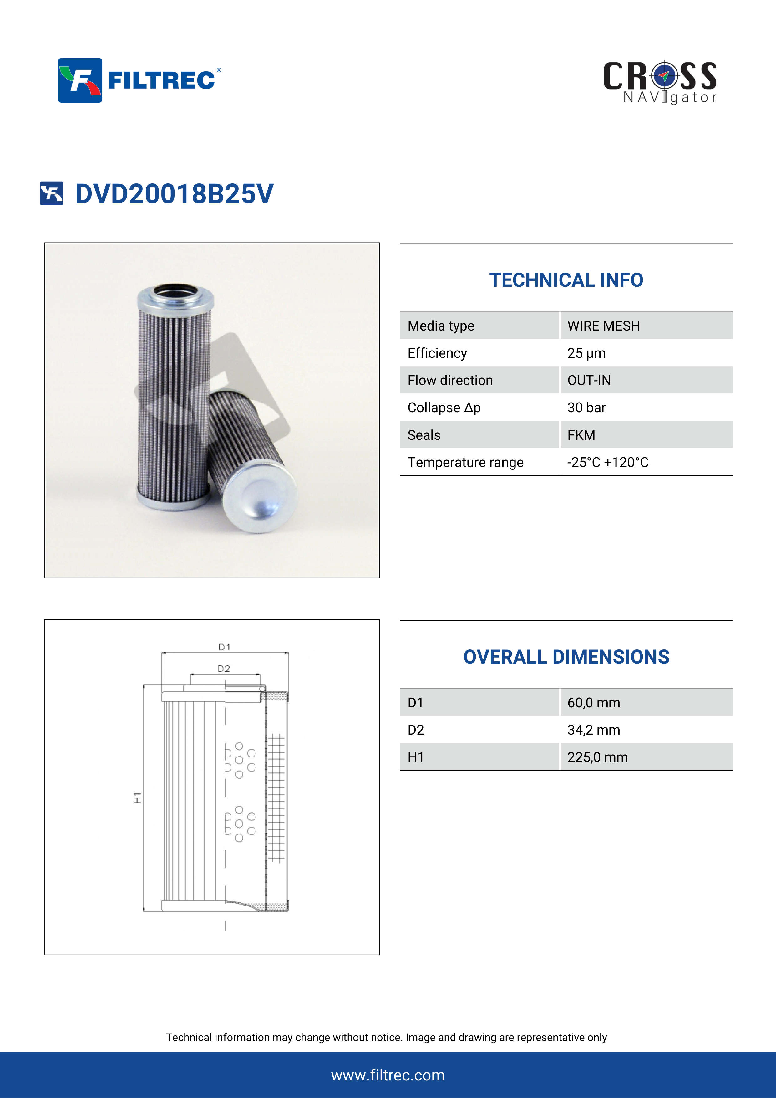 Genuine Filtrec DVD20018B25V. This Filtrec element is designed to meet or exceed the quality and performance of brand OEM’s ensuring superior filtration performance and long-lasting durability.