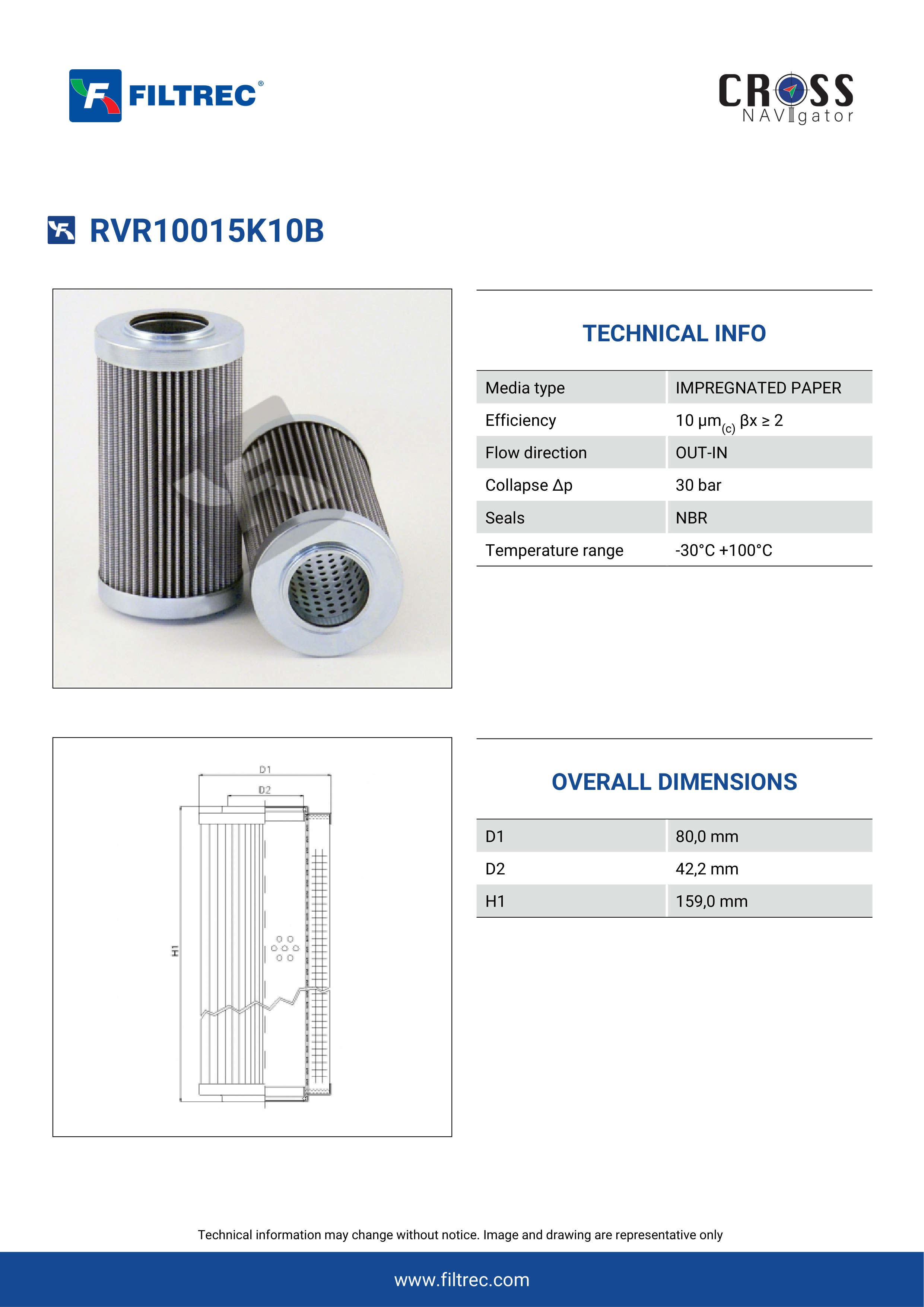 The efficiency of the element is shown using the Micron (µ) and Beta (β) ratings. The micron rating indicates the size of the particle being filtered and the beta rating the efficiency, calculated as 1/β.