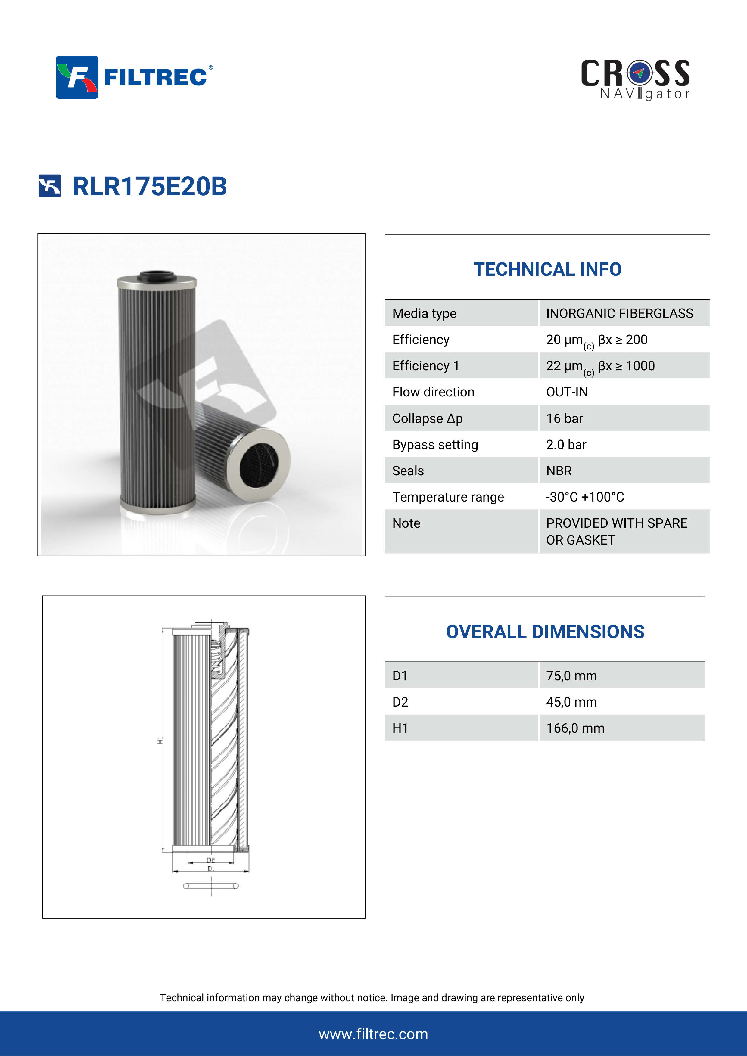 Genuine Filtrec RLR175E20B. This Filtrec element is designed to meet or exceed the quality and performance of brand OEM’s ensuring superior filtration performance and long-lasting durability.Engineered with their high performance media and a durable design, the RLR175E20B provides reliable and consistent performance over its lifespan, even in harsh operating environments. When you order from FilterFinder, you can trust that you are getting a reliable and high-quality replacement filter that will keep your system running smoothly.