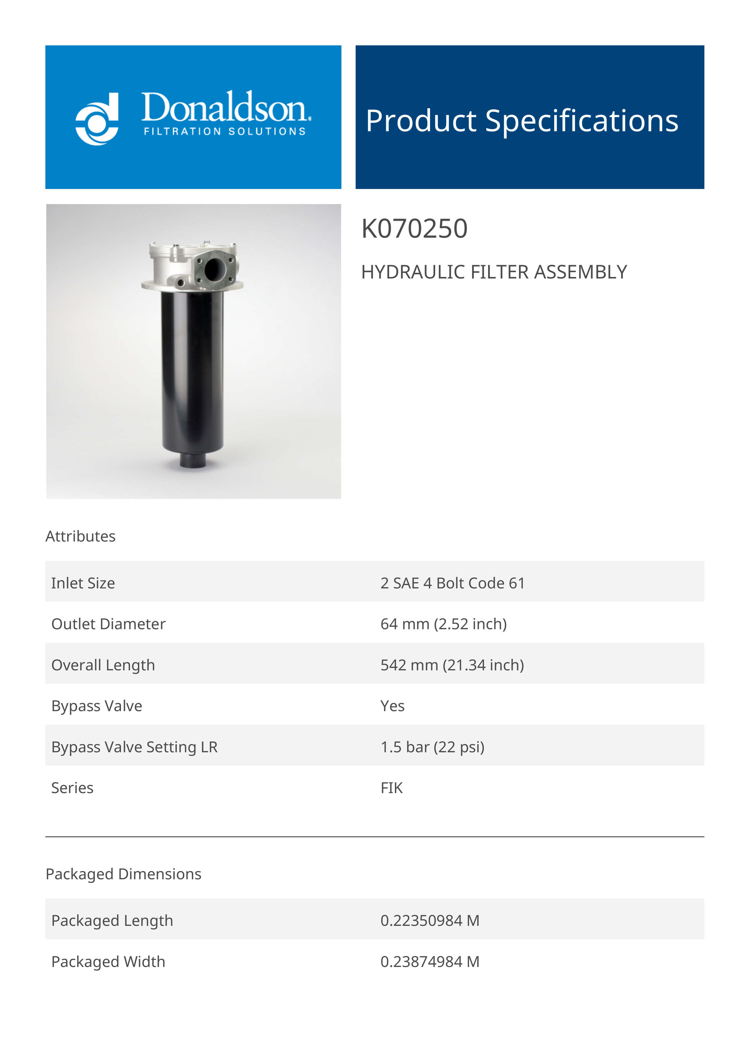 Donaldson K070250 Replacement Hydraulic Filter Assembly