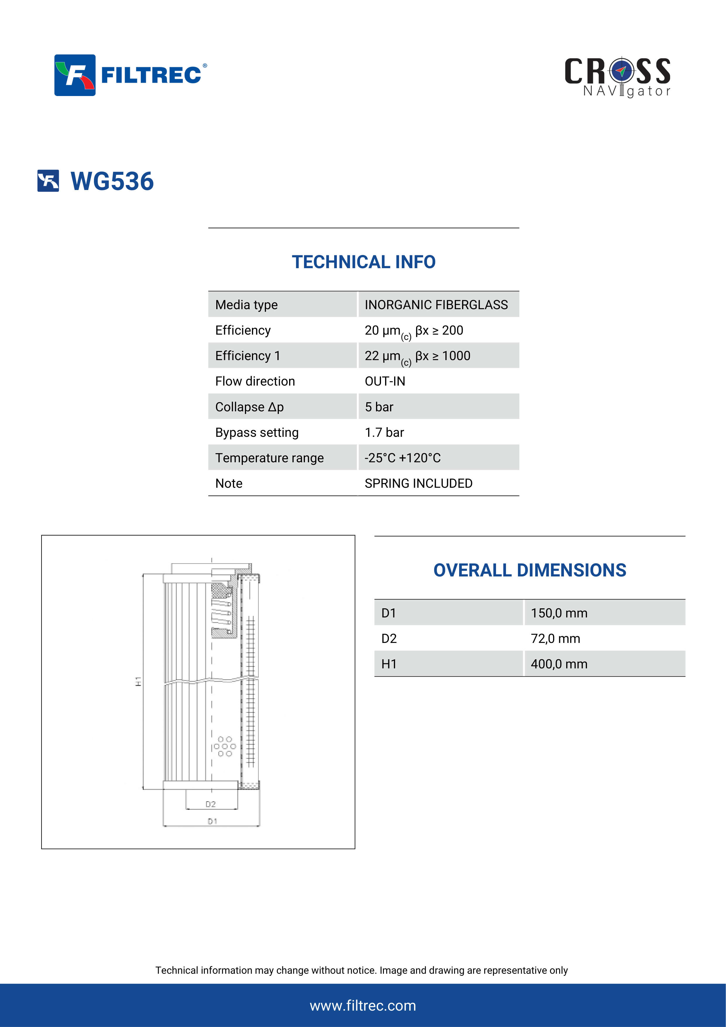 Genuine Filtrec WG536. This Filtrec element is designed to meet or exceed the quality and performance of brand OEM’s ensuring superior filtration performance and long-lasting durability.