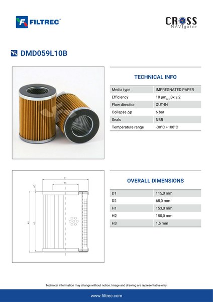 The efficiency of the element is shown using the Micron (µ) and Beta (β) ratings. The micron rating indicates the size of the particle being filtered and the beta rating the efficiency, calculated as 1/β.