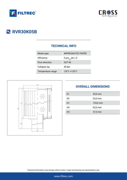 Engineered with their high performance media and a durable design, the RVR30K05B provides reliable and consistent performance over its lifespan, even in harsh operating environments. When you order from FilterFinder, you can trust that you are getting a reliable and high-quality replacement filter that will keep your system running smoothly.