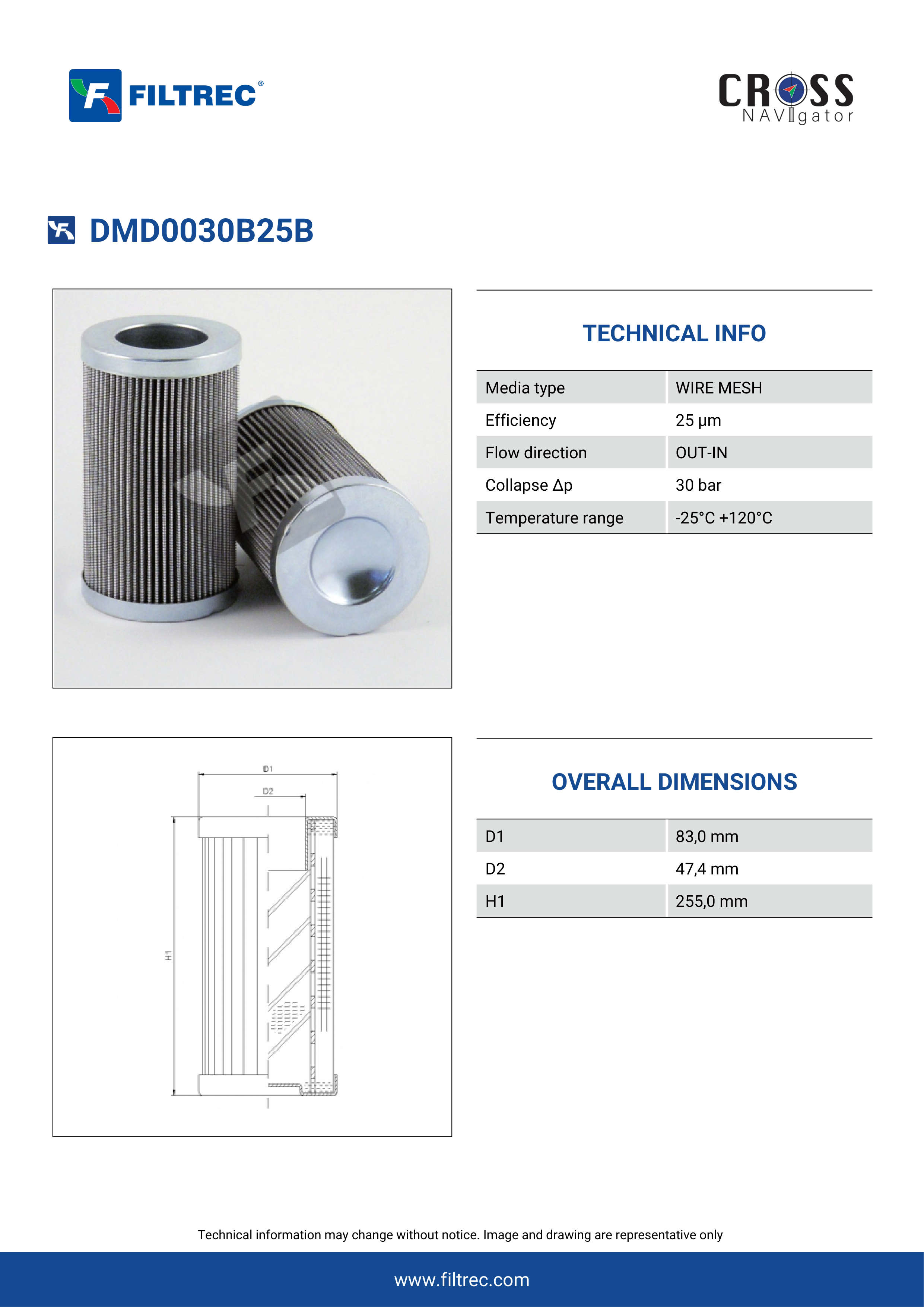Genuine Filtrec DMD0030B25B. This Filtrec element is designed to meet or exceed the quality and performance of brand OEM’s ensuring superior filtration performance and long-lasting durability.