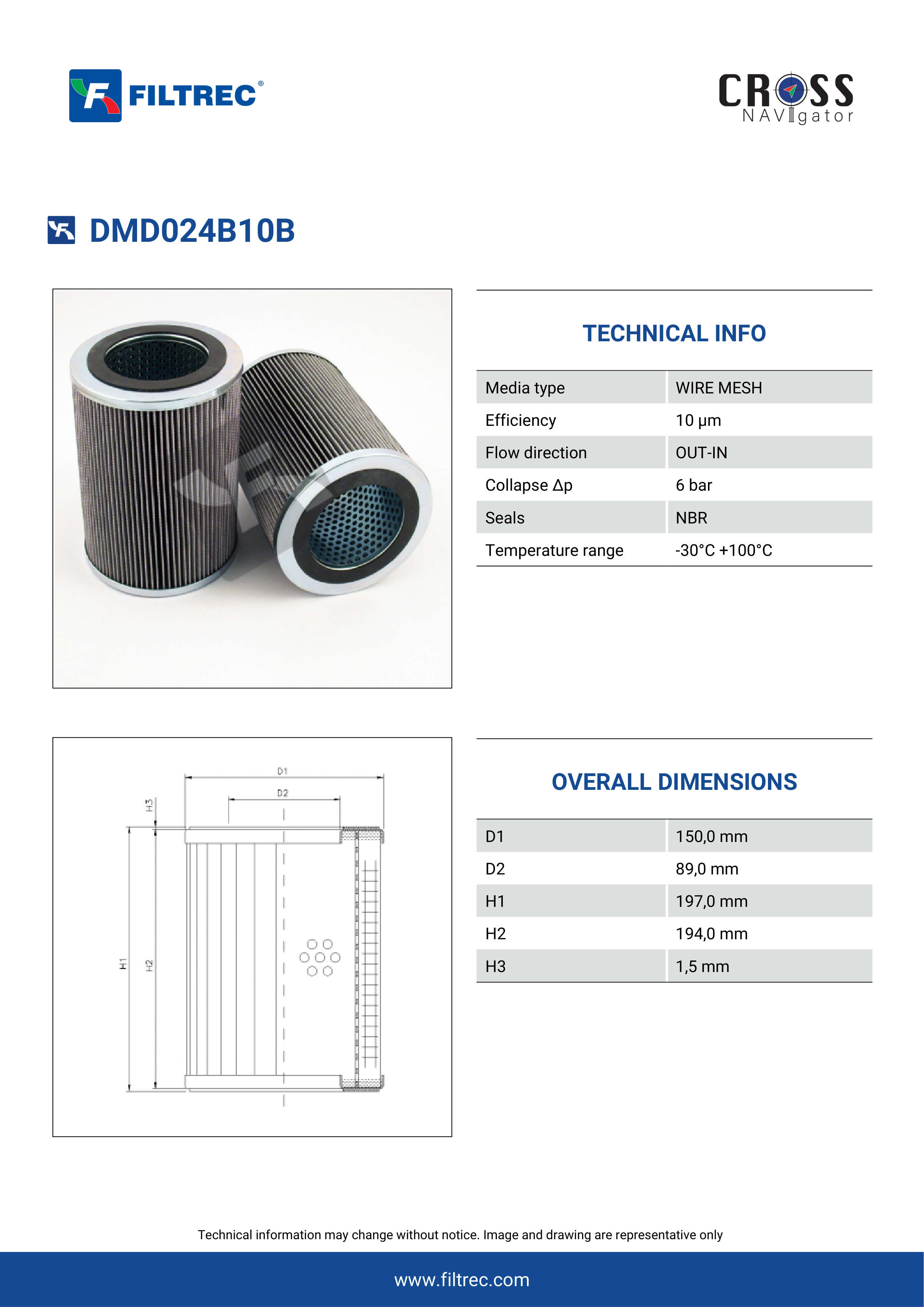 Genuine Filtrec DMD024B10B. This Filtrec element is designed to meet or exceed the quality and performance of brand OEM’s ensuring superior filtration performance and long-lasting durability.