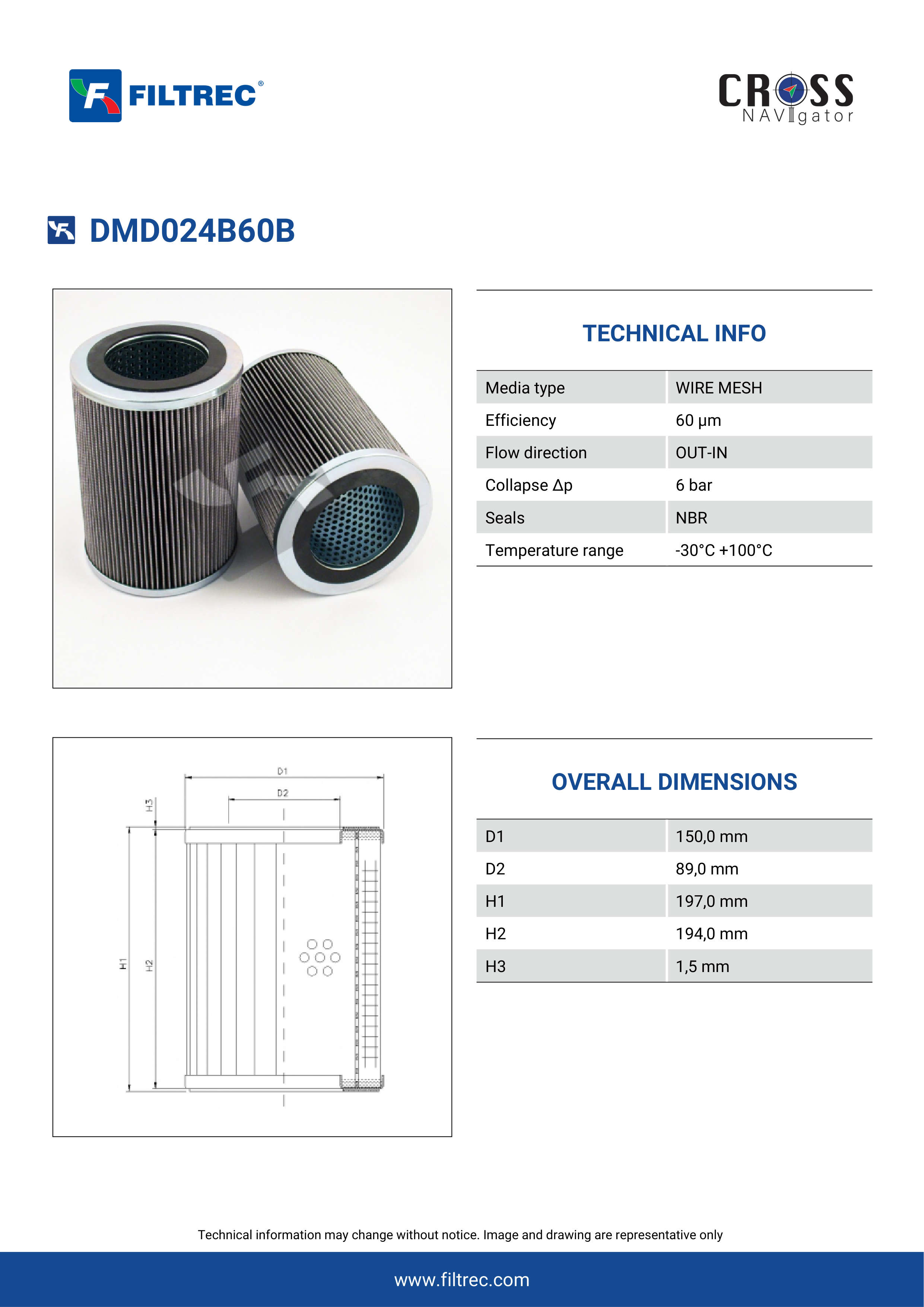 The efficiency of the element is shown using the Micron (µ) and Beta (β) ratings. The micron rating indicates the size of the particle being filtered and the beta rating the efficiency, calculated as 1/β.