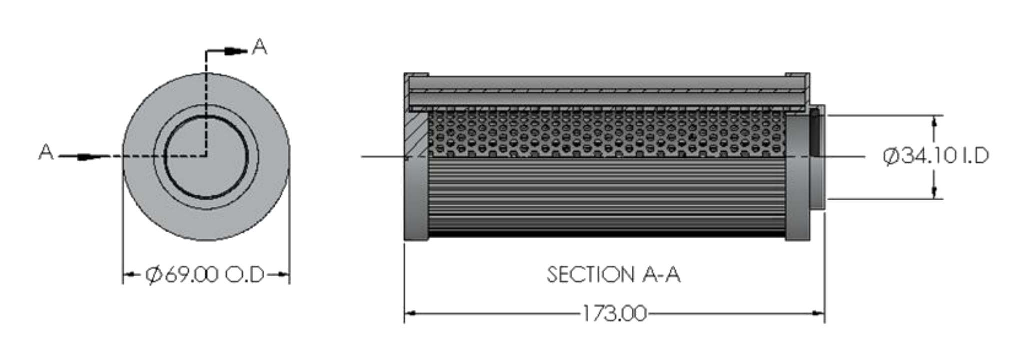 The efficiency of the element is shown using the Micron (µ) and Beta (β) ratings. The micron rating indicates the size of the particle being filtered and the beta rating the efficiency, calculated as 1/β.