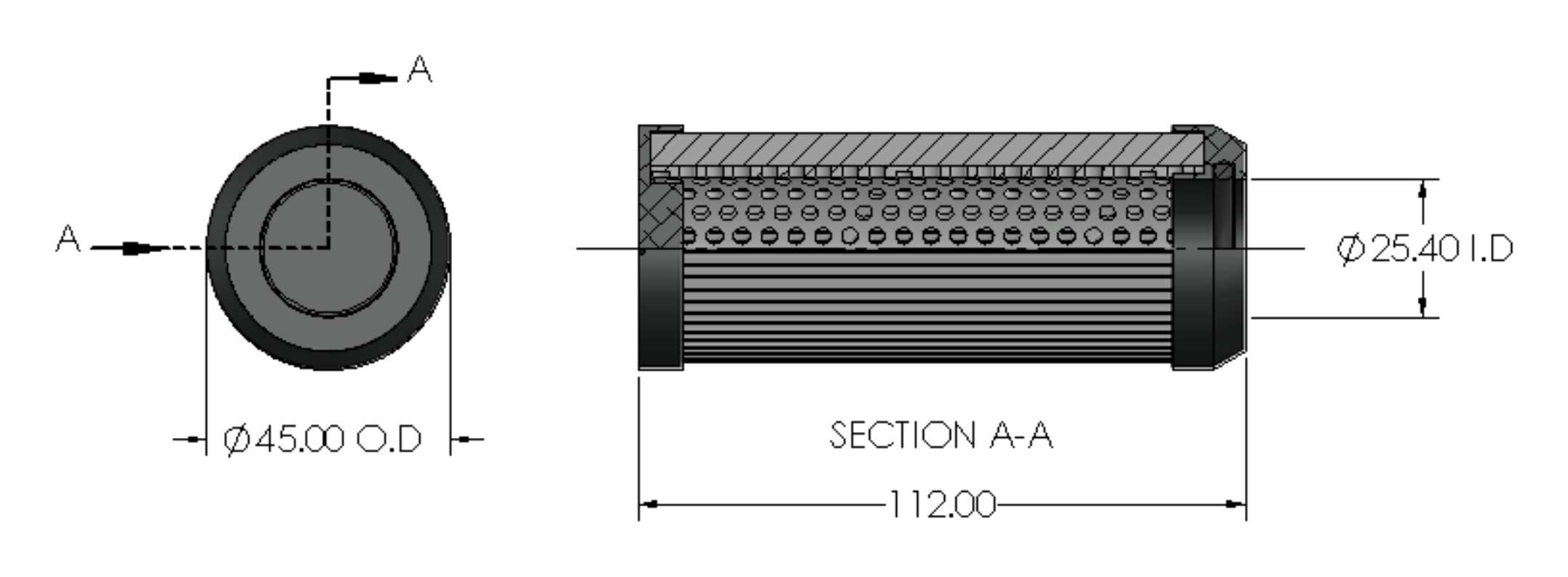 The efficiency of the element is shown using the Micron (µ) and Beta (β) ratings. The micron rating indicates the size of the particle being filtered and the beta rating the efficiency, calculated as 1/β.