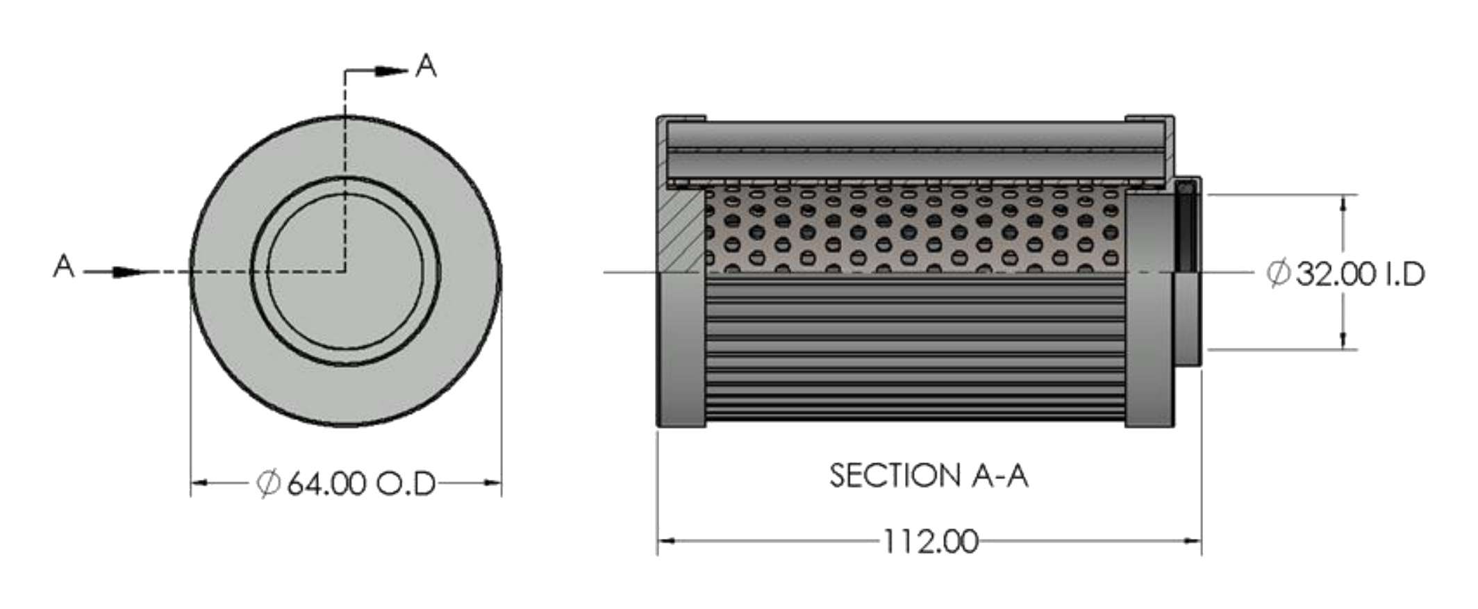 The efficiency of the element is shown using the Micron (µ) and Beta (β) ratings. The micron rating indicates the size of the particle being filtered and the beta rating the efficiency, calculated as 1/β.