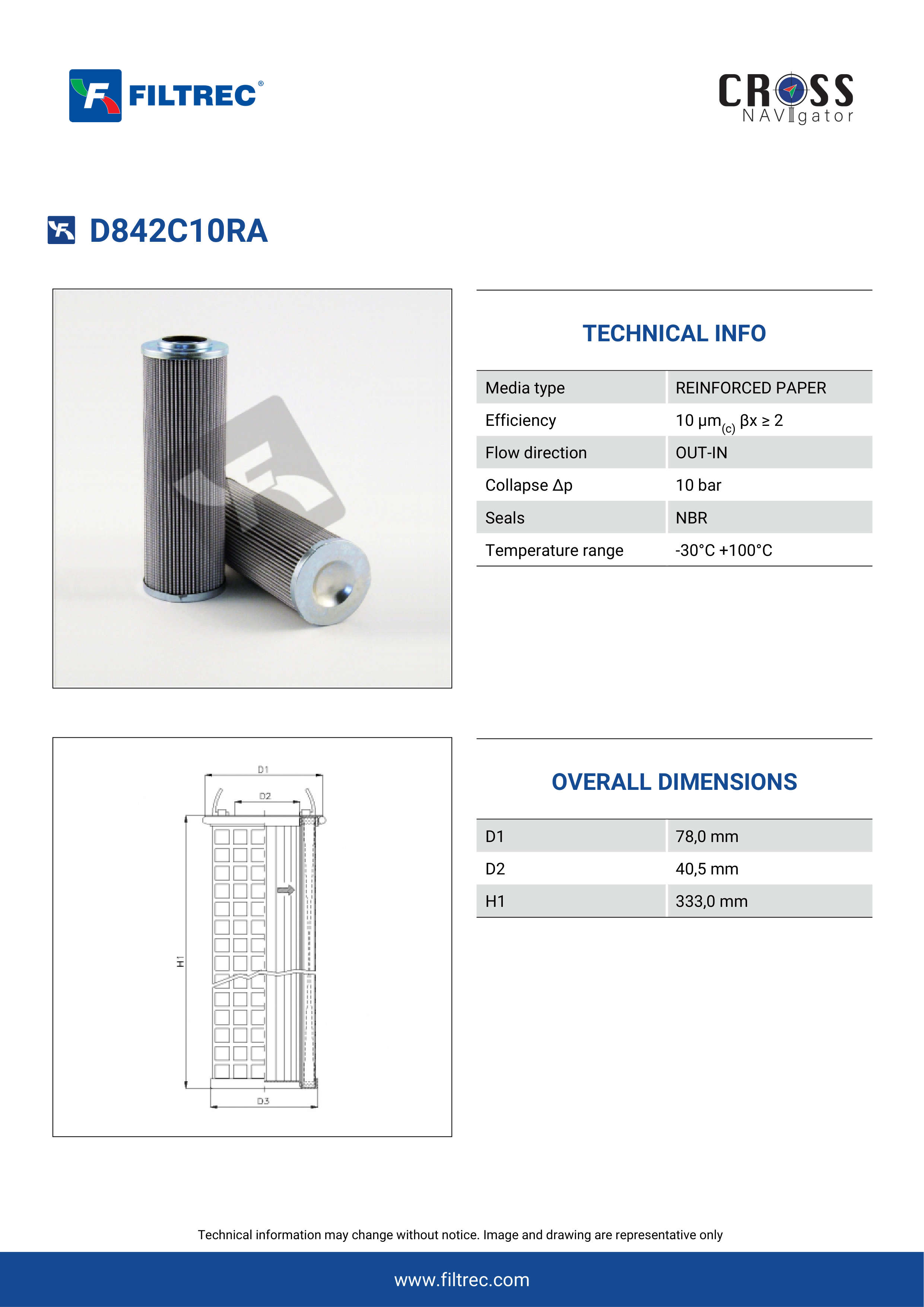 Engineered with their high performance media and a durable design, the D842C10RA provides reliable and consistent performance over its lifespan, even in harsh operating environments. When you order from FilterFinder, you can trust that you are getting a reliable and high-quality replacement filter that will keep your system running smoothly.