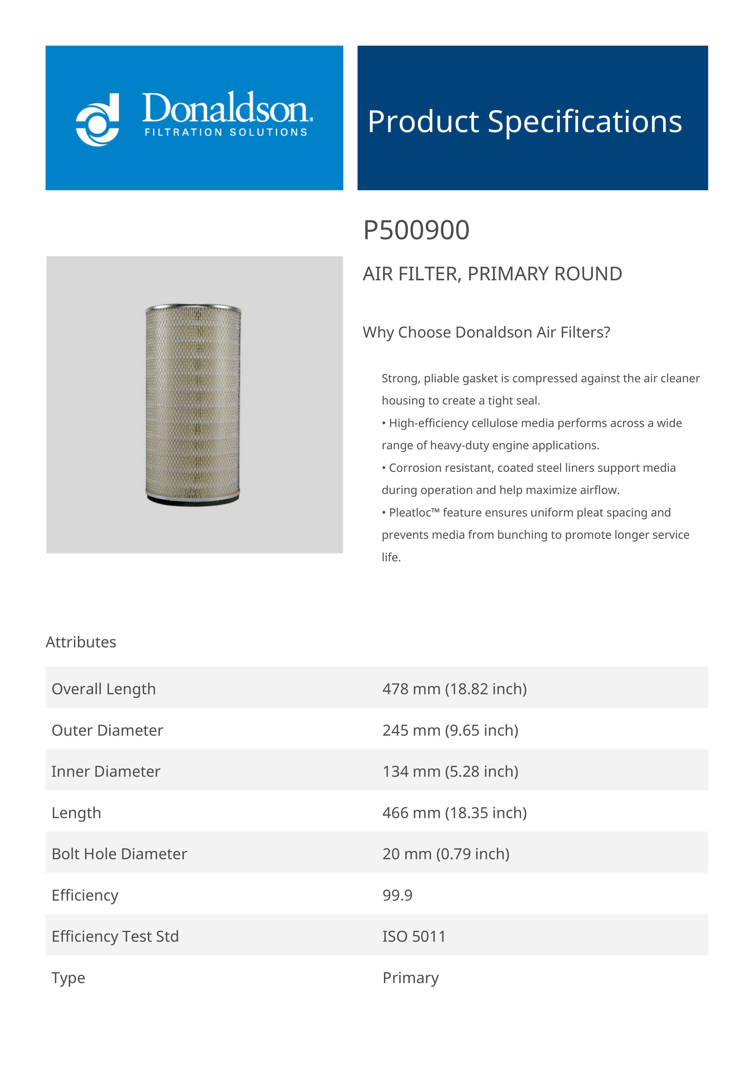 Genuine Donaldson P500900 Air Primary Round is engineered to deliver reliable performance and durability across a wide range of applications. Designed with high-quality materials, it ensures consistent functionality while meeting demanding operational requirements.