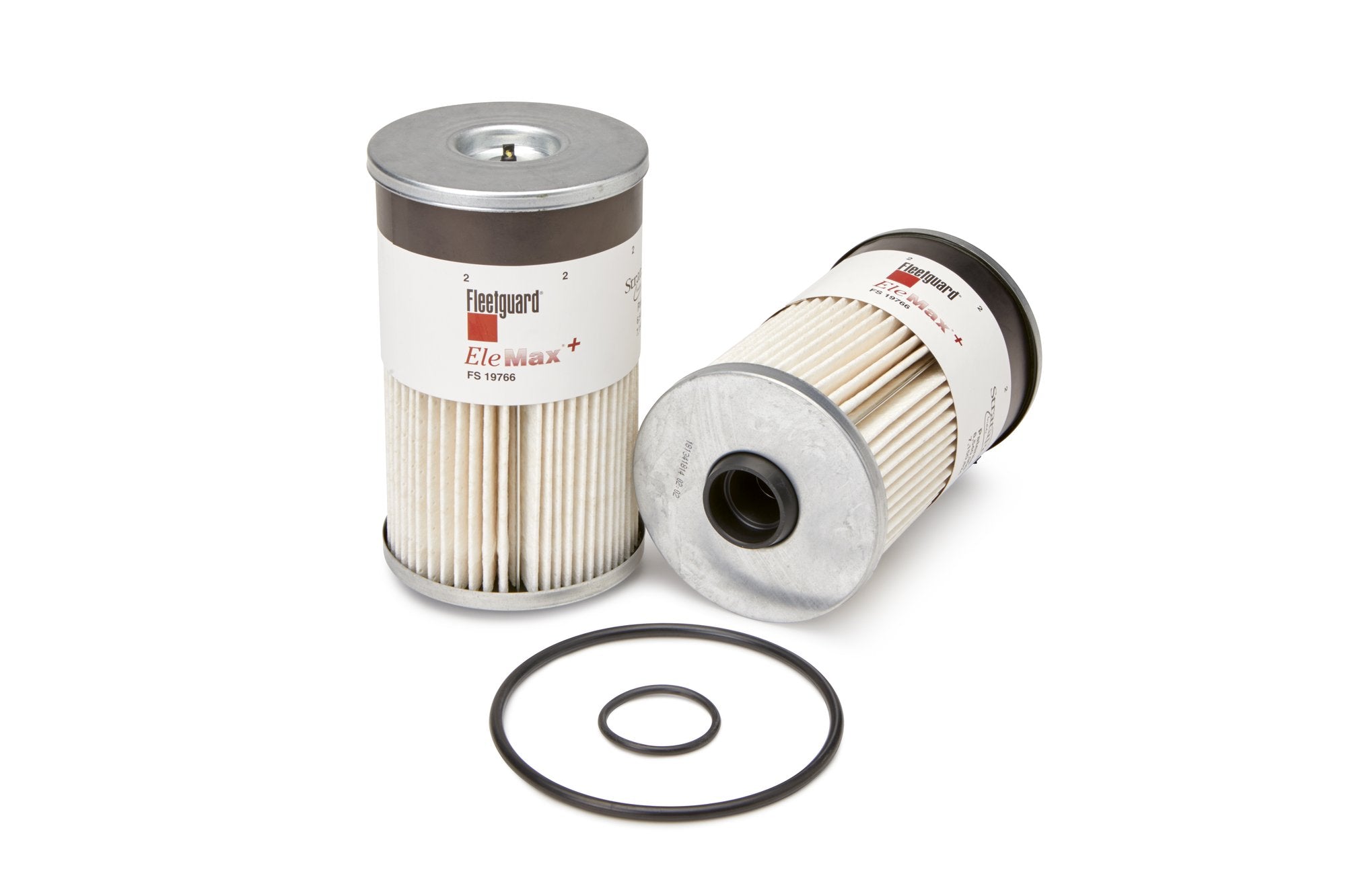 Fleetguard® FS19766 plus size EleMax™ fuel filter protects vital fuel system components. Its patented control valve provides full use of the filter, fits Fuel Pro® and many Diesel Pro® models, has multiple micron ratings for OEM compliance, and is biodiesel compatible.