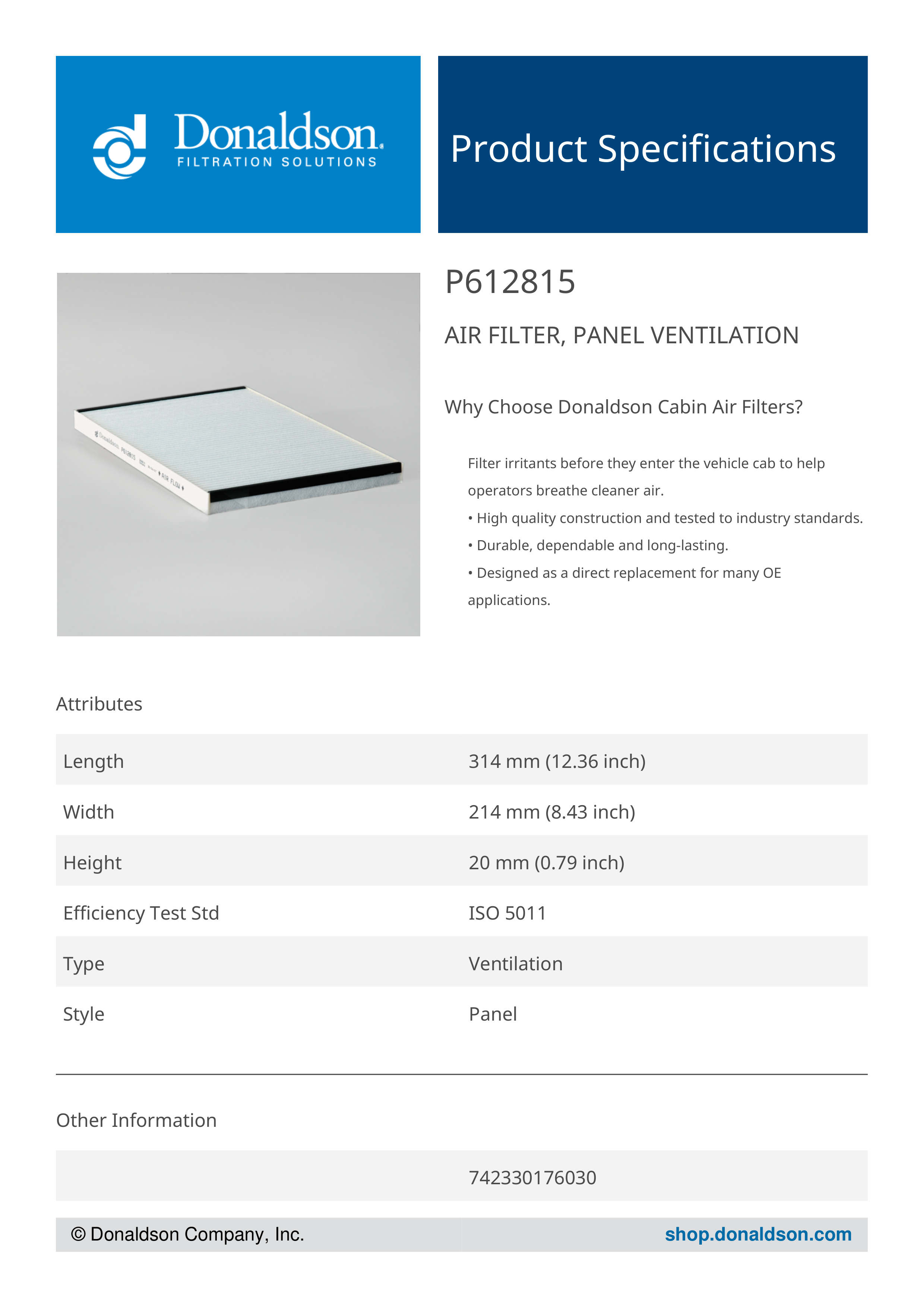 The efficiency of the element is shown using the Micron (µ) and Beta (β) ratings. The micron rating indicates the size of the particle being filtered and the beta rating the efficiency, calculated as 1/β.