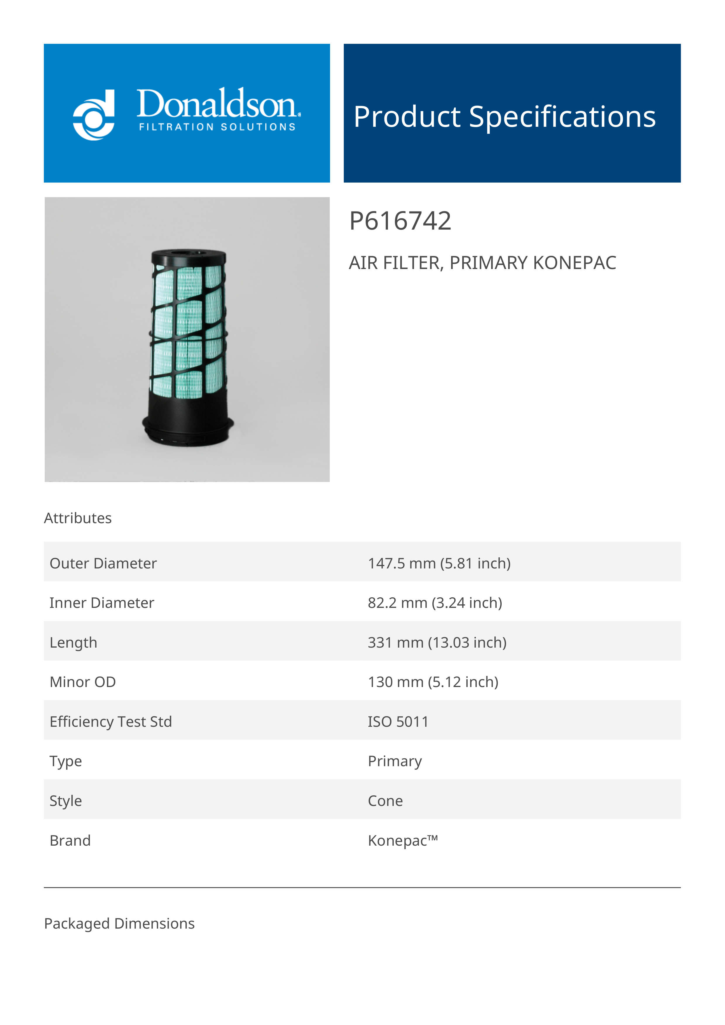Genuine Donaldson P616742 Air Filter, Primary Konepac is designed to provide reliable performance in air filter, primary konepac applications. Built with high-quality materials, it ensures consistent functionality and durability.Ideal for industrial, automotive, or heavy-duty environments, this component enhances system performance and longevity.