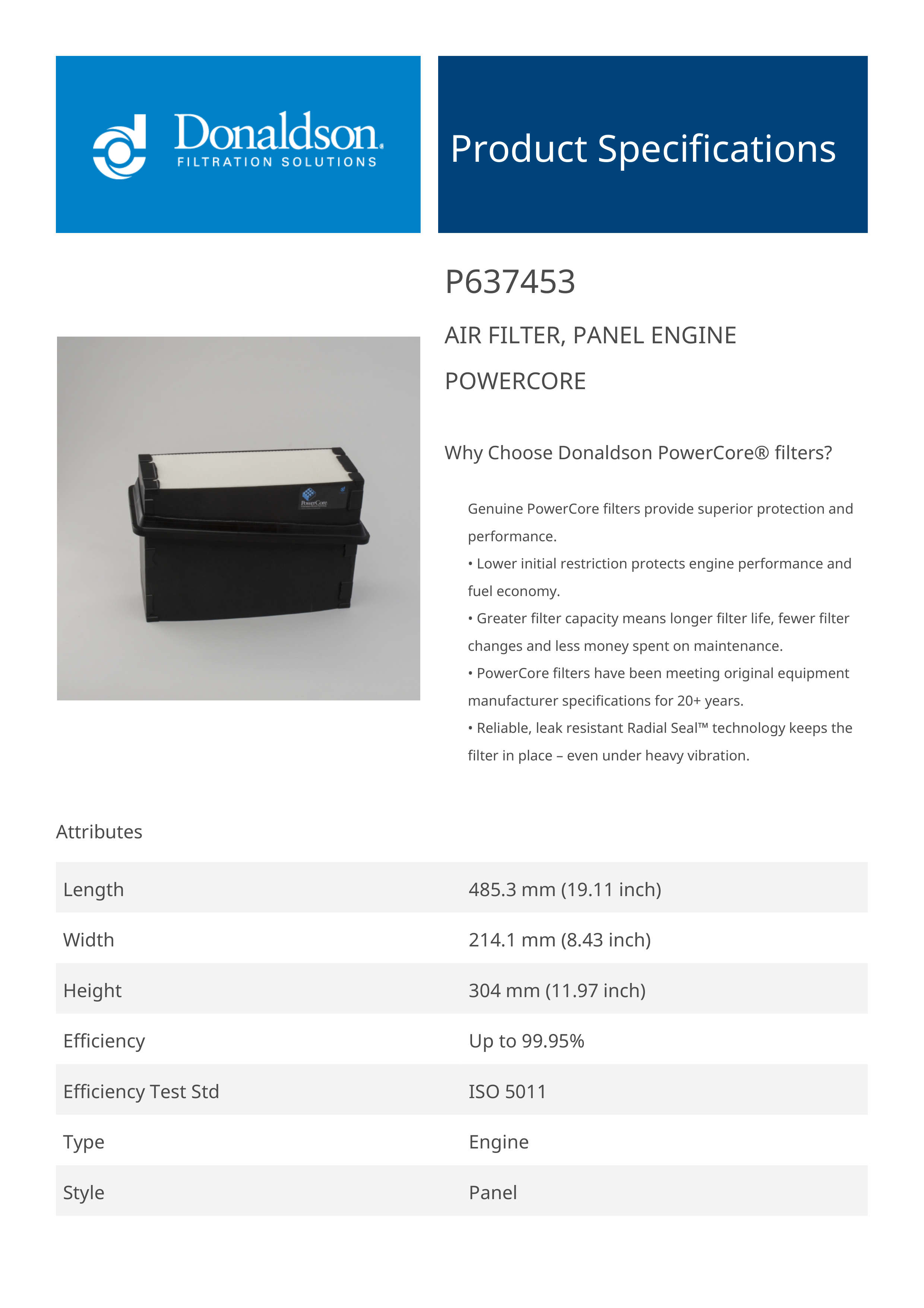 Why Choose Donaldson PowerCore® filters?Genuine PowerCore filters provide superior protection and performance.
