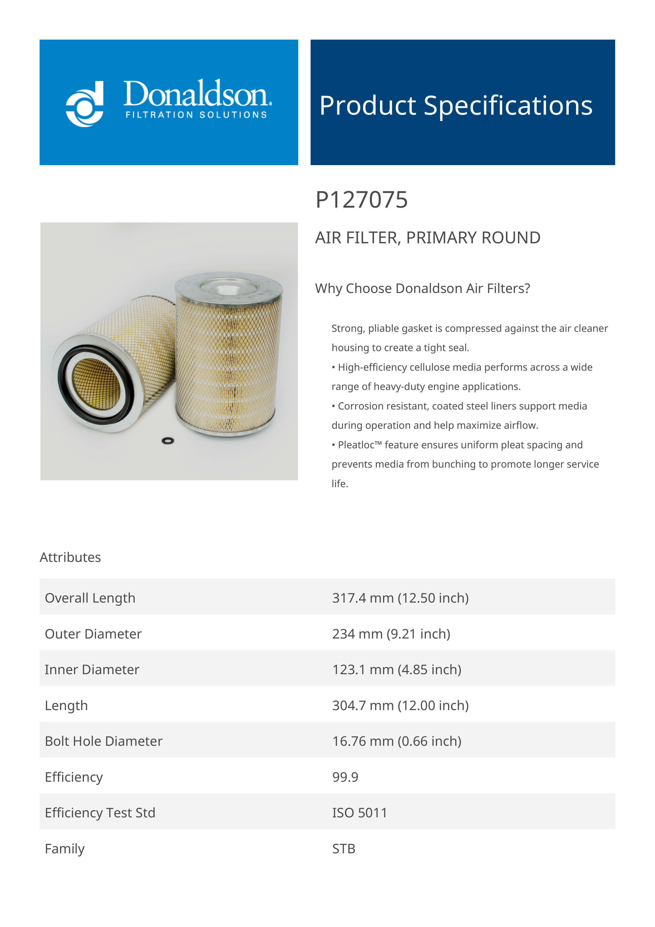 Why Choose Donaldson Air Filters?Strong, pliable gasket is compressed against the air cleaner housing to create a tight seal.