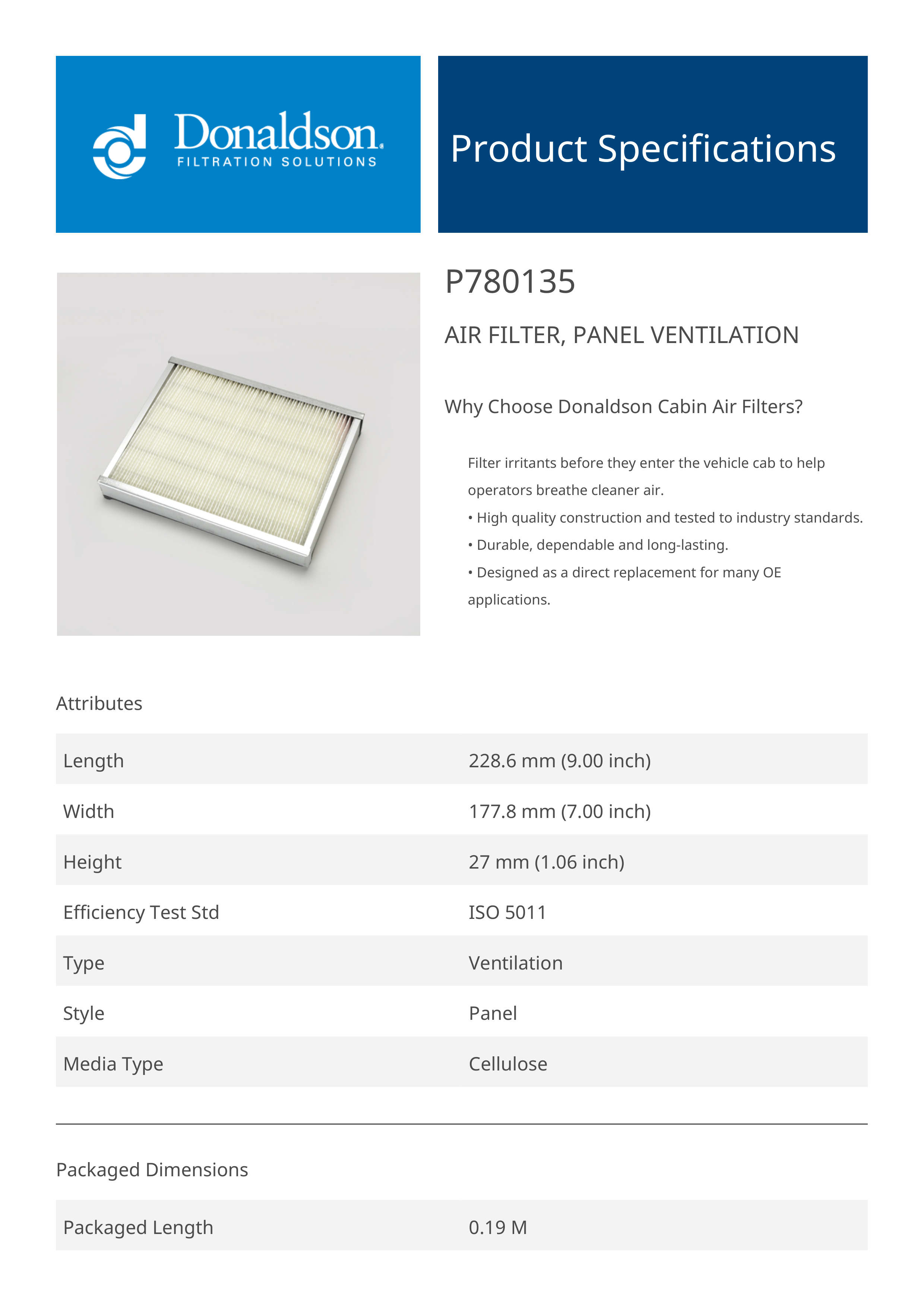 Why Choose Donaldson Cabin Air Filters?Filter irritants before they enter the vehicle cab to help operators breathe cleaner air.