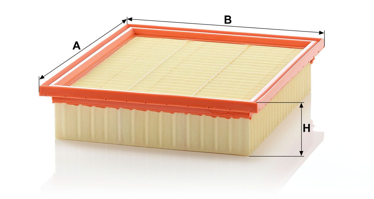 High-quality MANN-FILTER air filters for clean air intake and optimum protection for your engine, mass air flow sensor & other sensitive components / They meet requirements of modern engine technology. Highest dirt holding capacity and dirt separation efficiency, low flow resistance and high pleat stability ensure functional reliability during the entire service interval.