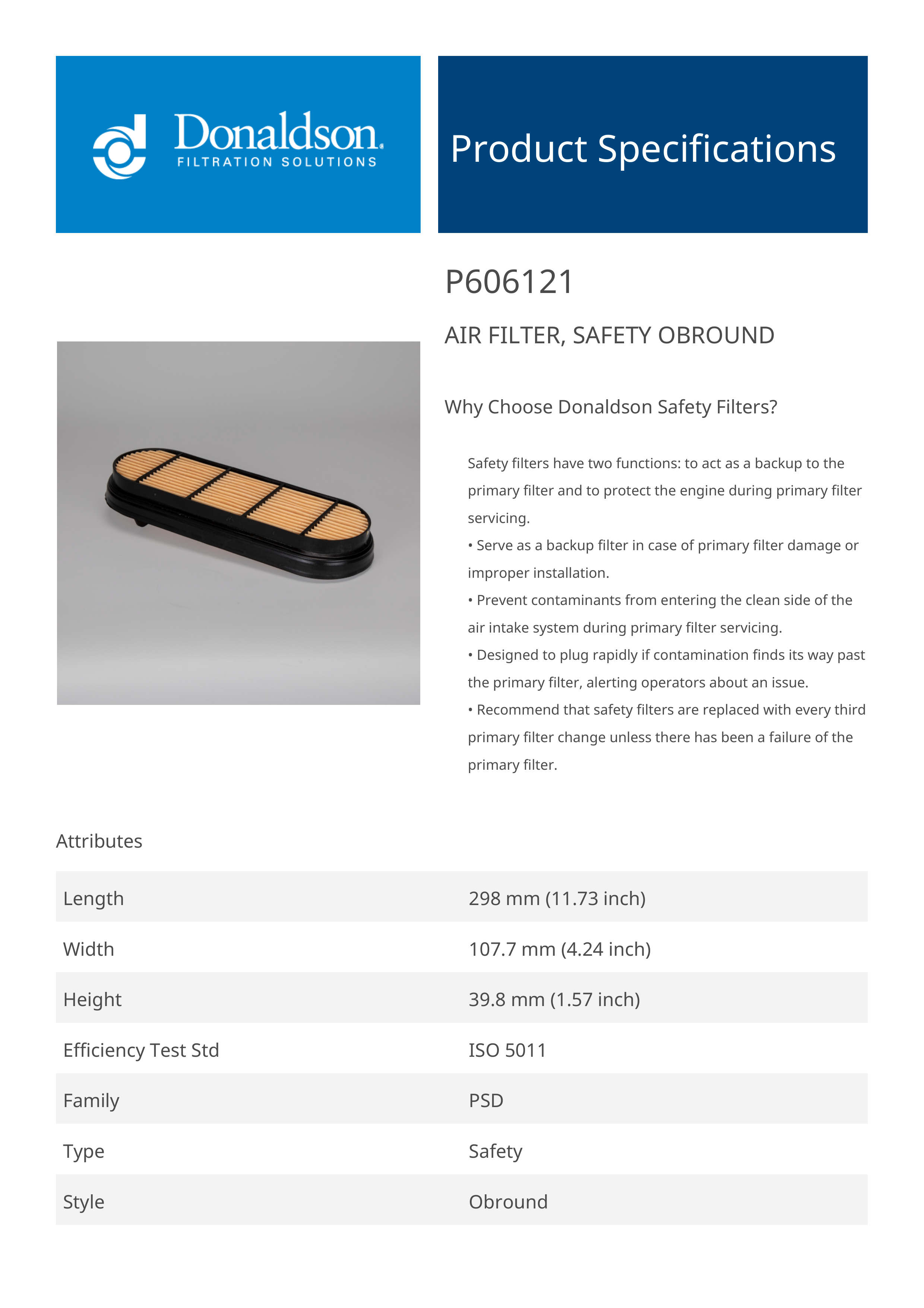 Donaldson P606121 Air Filter, Safety Obround | Replaces the Baldwin PA4704