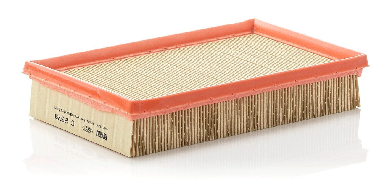 High-quality MANN-FILTER air filters for clean air intake and optimum protection for your engine, mass air flow sensor & other sensitive components / They meet requirements of modern engine technology. Highest dirt holding capacity and dirt separation efficiency, low flow resistance and high pleat stability ensure functional reliability during the entire service interval.
