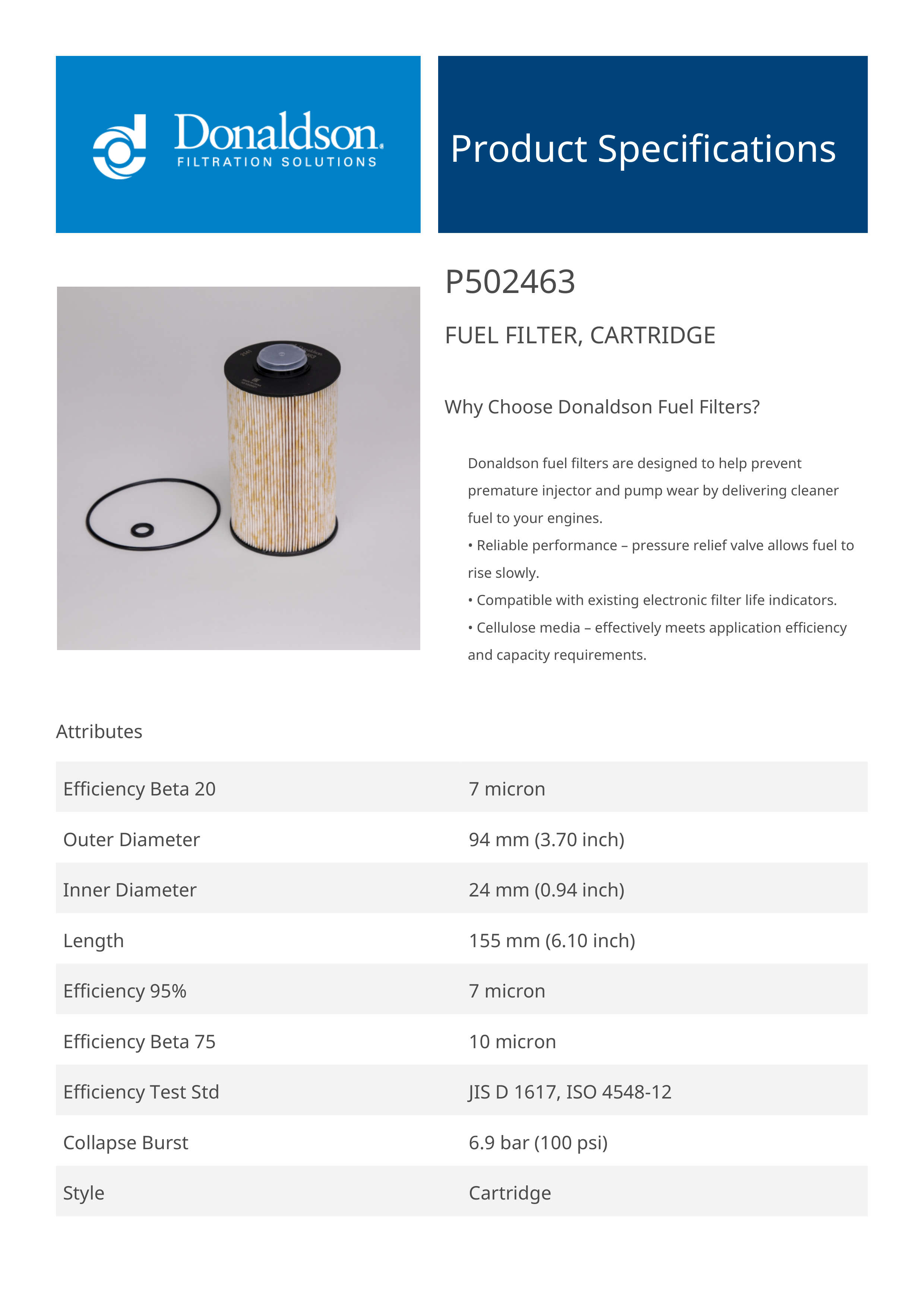 Why Choose Donaldson Fuel Filters?Donaldson fuel filters are designed to help prevent premature injector and pump wear by delivering cleaner fuel to your engines.