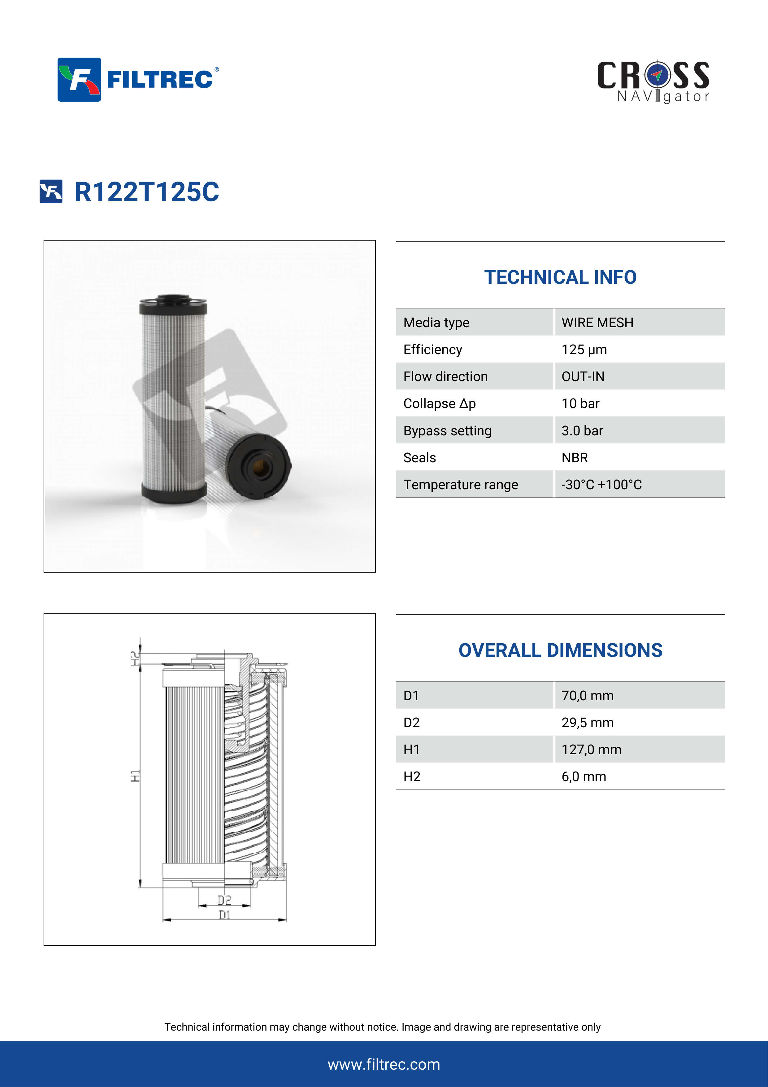 The efficiency of the element is shown using the Micron (µ) and Beta (β) ratings. The micron rating indicates the size of the particle being filtered and the beta rating the efficiency, calculated as 1/β.