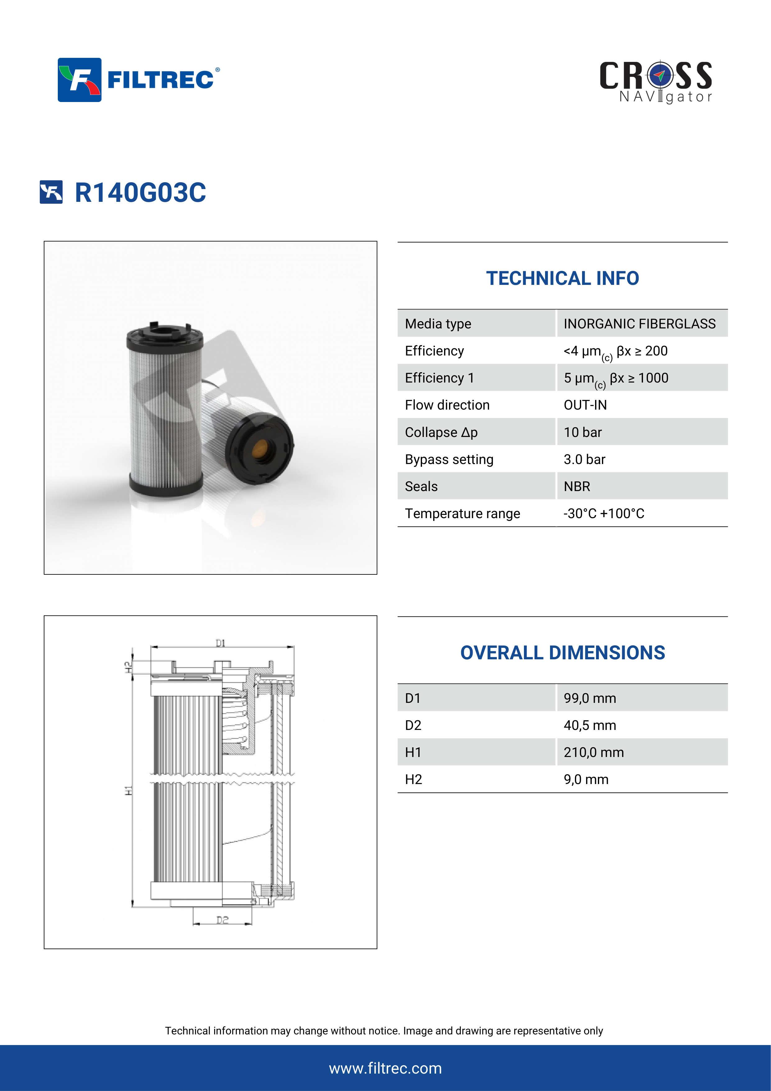 Genuine Filtrec R140G03C. This Filtrec element is designed to meet or exceed the quality and performance of brand OEM’s ensuring superior filtration performance and long-lasting durability.