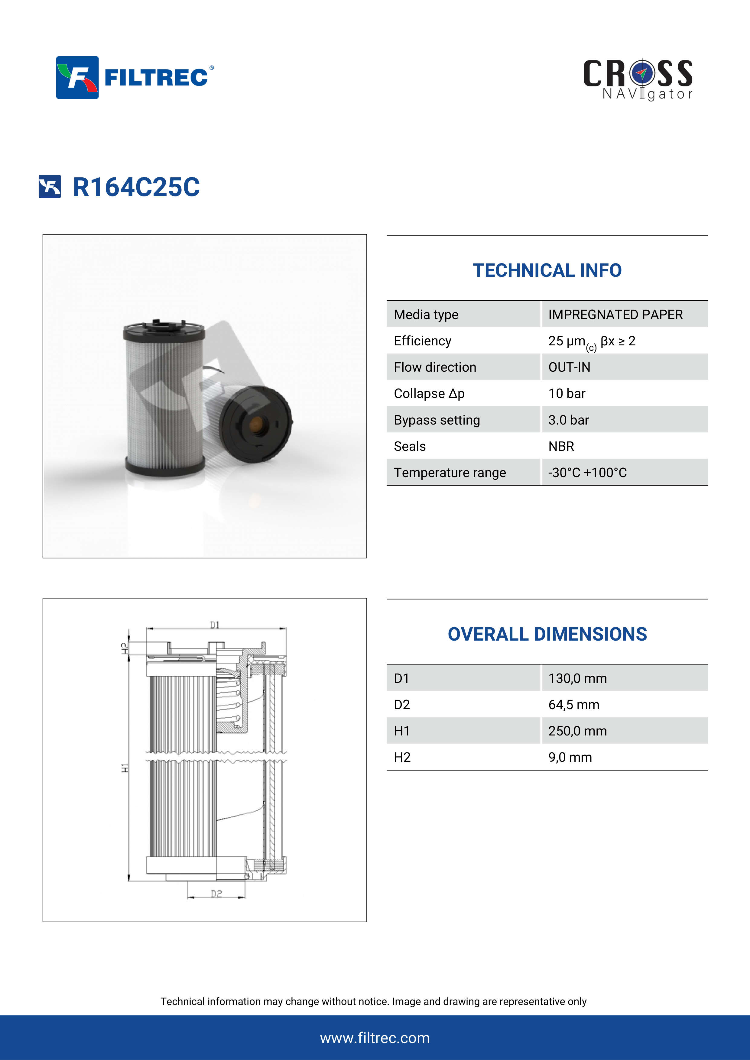 The efficiency of the element is shown using the Micron (µ) and Beta (β) ratings. The micron rating indicates the size of the particle being filtered and the beta rating the efficiency, calculated as 1/β.