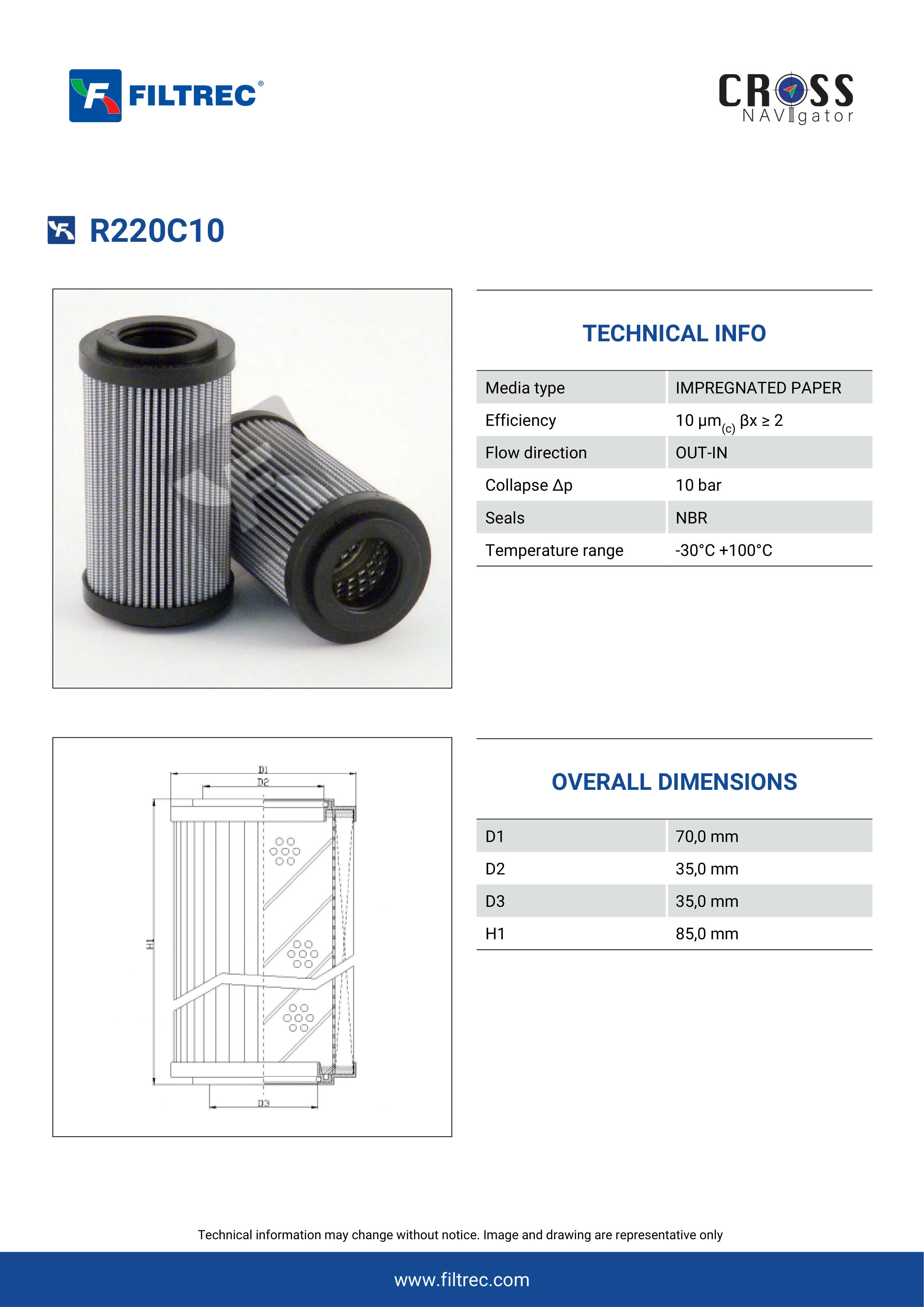 Genuine Filtrec R220C10. This Filtrec element is designed to meet or exceed the quality and performance of brand OEM’s ensuring superior filtration performance and long-lasting durability.