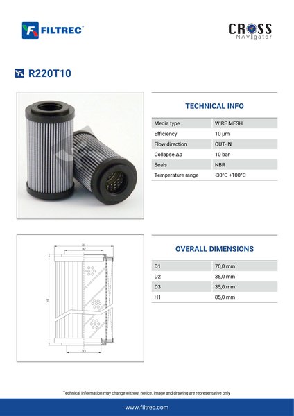 Engineered with their high performance media and a durable design, the R220T10 provides reliable and consistent performance over its lifespan, even in harsh operating environments. When you order from FilterFinder, you can trust that you are getting a reliable and high-quality replacement filter that will keep your system running smoothly.