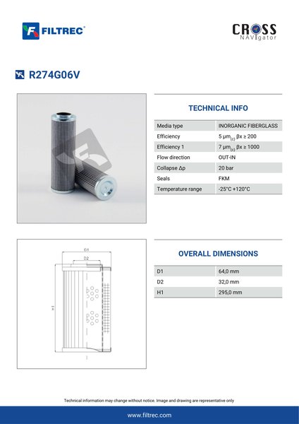 Engineered with their high performance media and a durable design, the R274G06V provides reliable and consistent performance over its lifespan, even in harsh operating environments. When you order from FilterFinder, you can trust that you are getting a reliable and high-quality replacement filter that will keep your system running smoothly.
