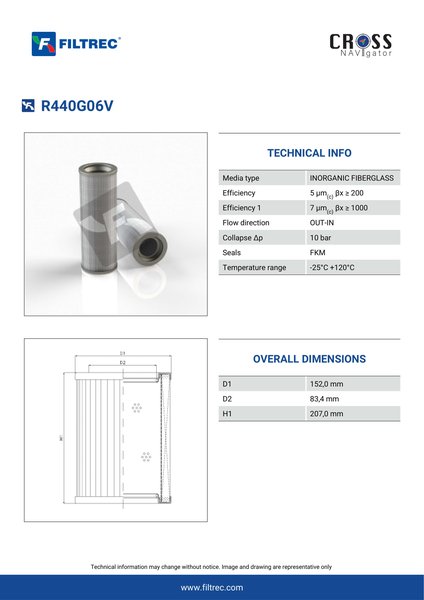 Engineered with their high performance media and a durable design, the R440G06V provides reliable and consistent performance over its lifespan, even in harsh operating environments. When you order from FilterFinder, you can trust that you are getting a reliable and high-quality replacement filter that will keep your system running smoothly.